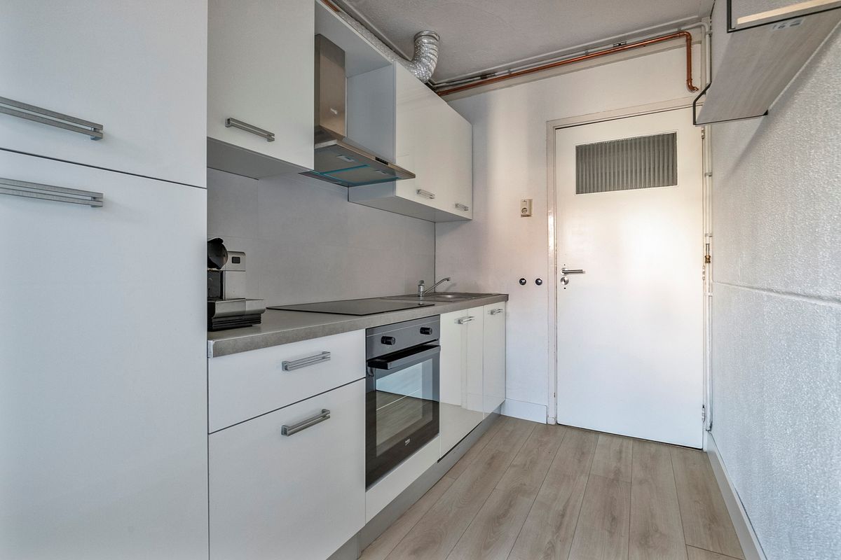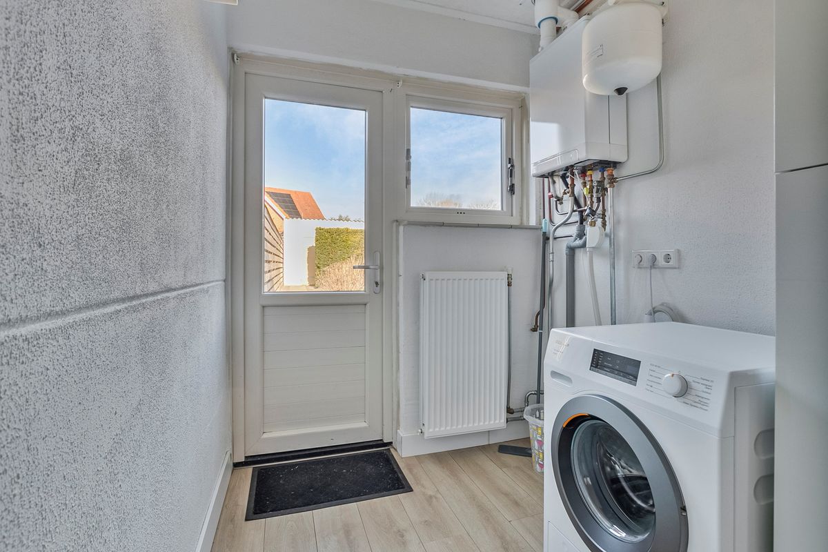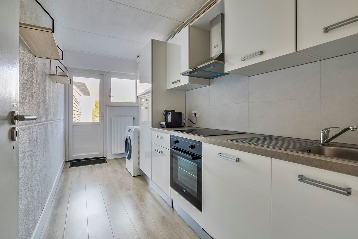 De keukenruimte is voorzien van een nette keukenopstelling met inbouwapparatuur en beschikt over aansluitingen voor huishoudelijke apparaten, ook bevindt de cv-installatie (Intergas, 2022) zich hier. Vanuit de keuken is de achtertuin bereikbaar.