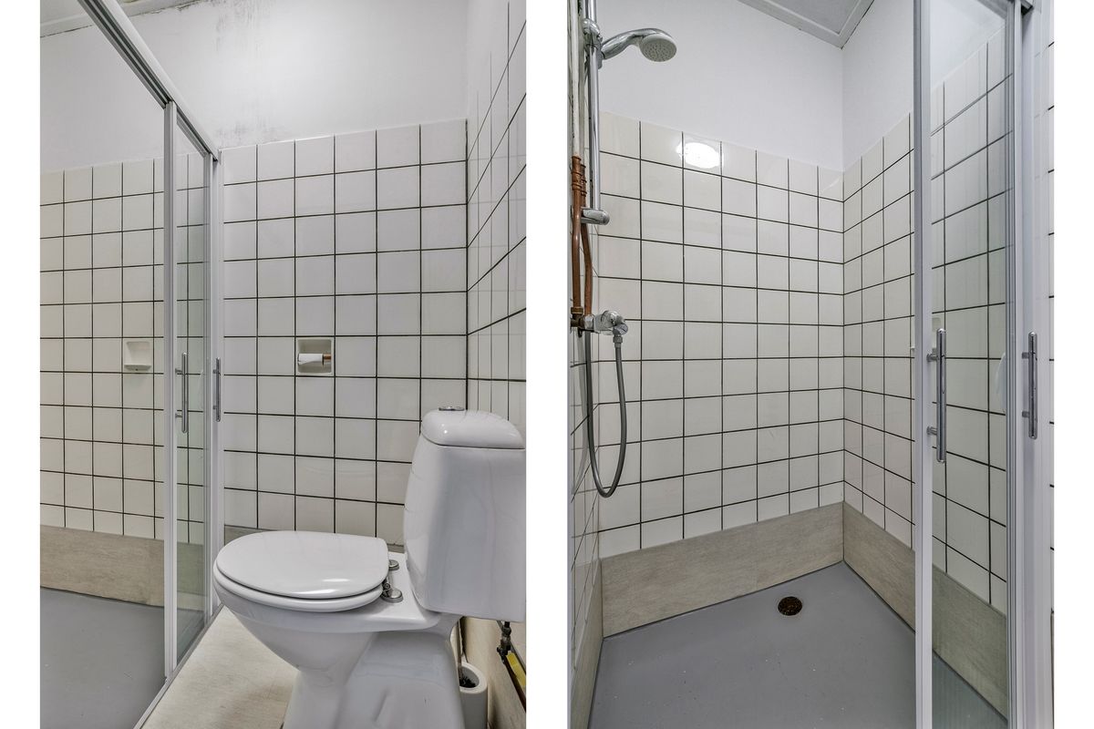De badkamer op de begane grond bevindt zich in het midden van de woning en biedt ruimte aan een douchehoek en een toilet. Deze woning beschikt bovendien over een slaapkamer op de begane grond, ideaal voor wie op zoek is naar gemak of mobiliteit op de lange termijn.