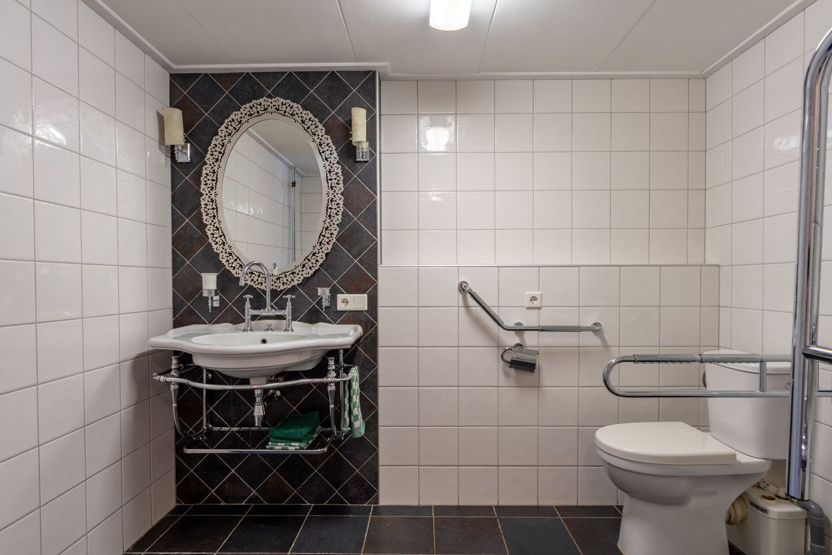 Het buitenterrein aan de voorzijde van het pand is ingericht met bestrating en hoort eveneens bij het perceel. Links van de woning bevindt zich de oprit met toegang naar de hal. De groene tuin is ingericht met verschillende terrassen, sierbestrating, gazon en plantenborders. Er is op elk moment van de dag een plek om van de zon te genieten. Achter het pand is het terrein deels verhard en is er volop ruimte voor buitenactiviteiten. Parkeren kan op eigen terrein en in de directe omgeving.