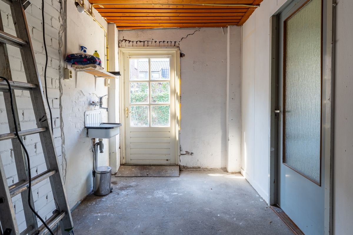 Centrale hal met trapopgang naar de verdieping, voorkamer/werkkamer, keuken met rechte opstelling voorzien van inbouwapparatuur, woonkamer met schouw, toilet, ruime bijkeuken met wasmachineaansluitingen en CV-opstelling. Aansluitend bevindt zich de badkamer met tweede toilet, douche en wastafel. Aan de achterzijde geven authentieke dubbele deuren toegang tot de tuin. Vanuit buiten is ook de inpandige bergruimte bereikbaar.