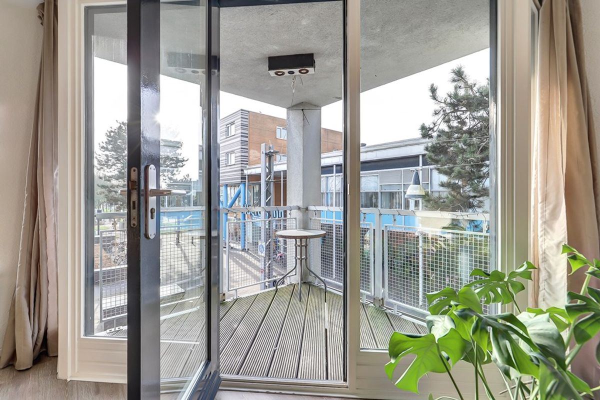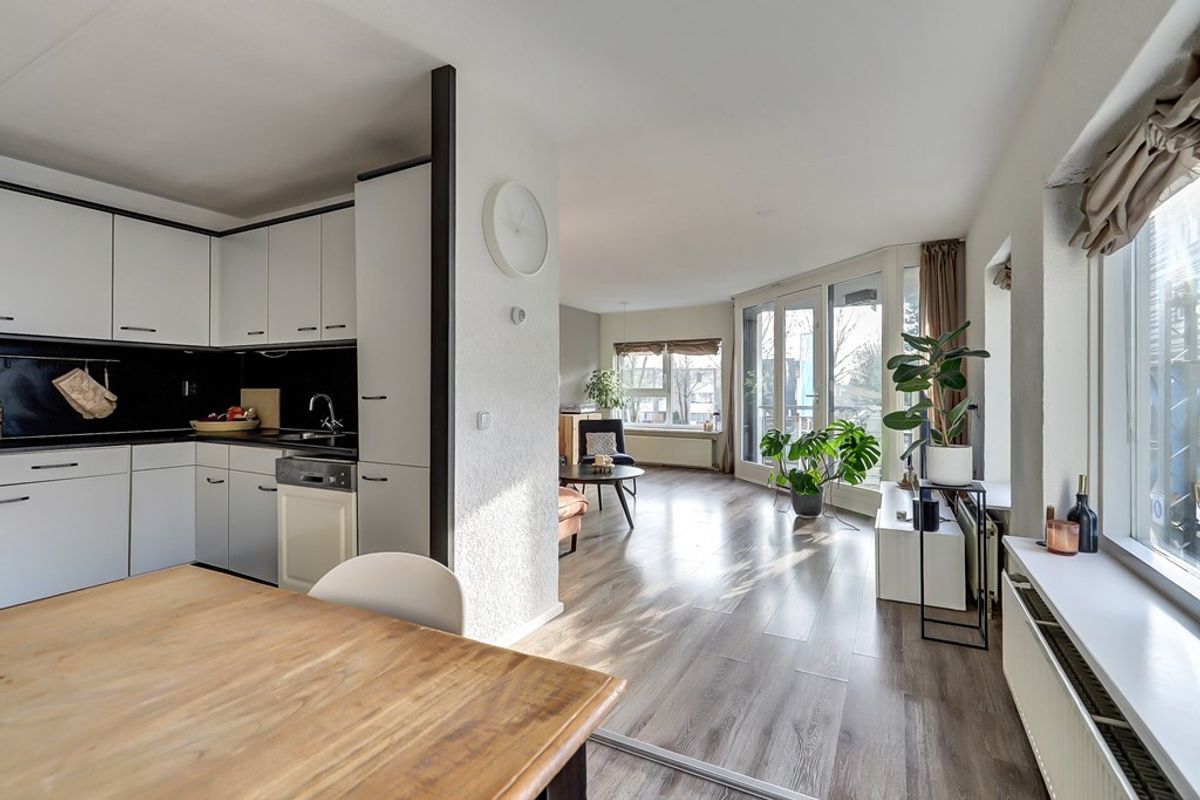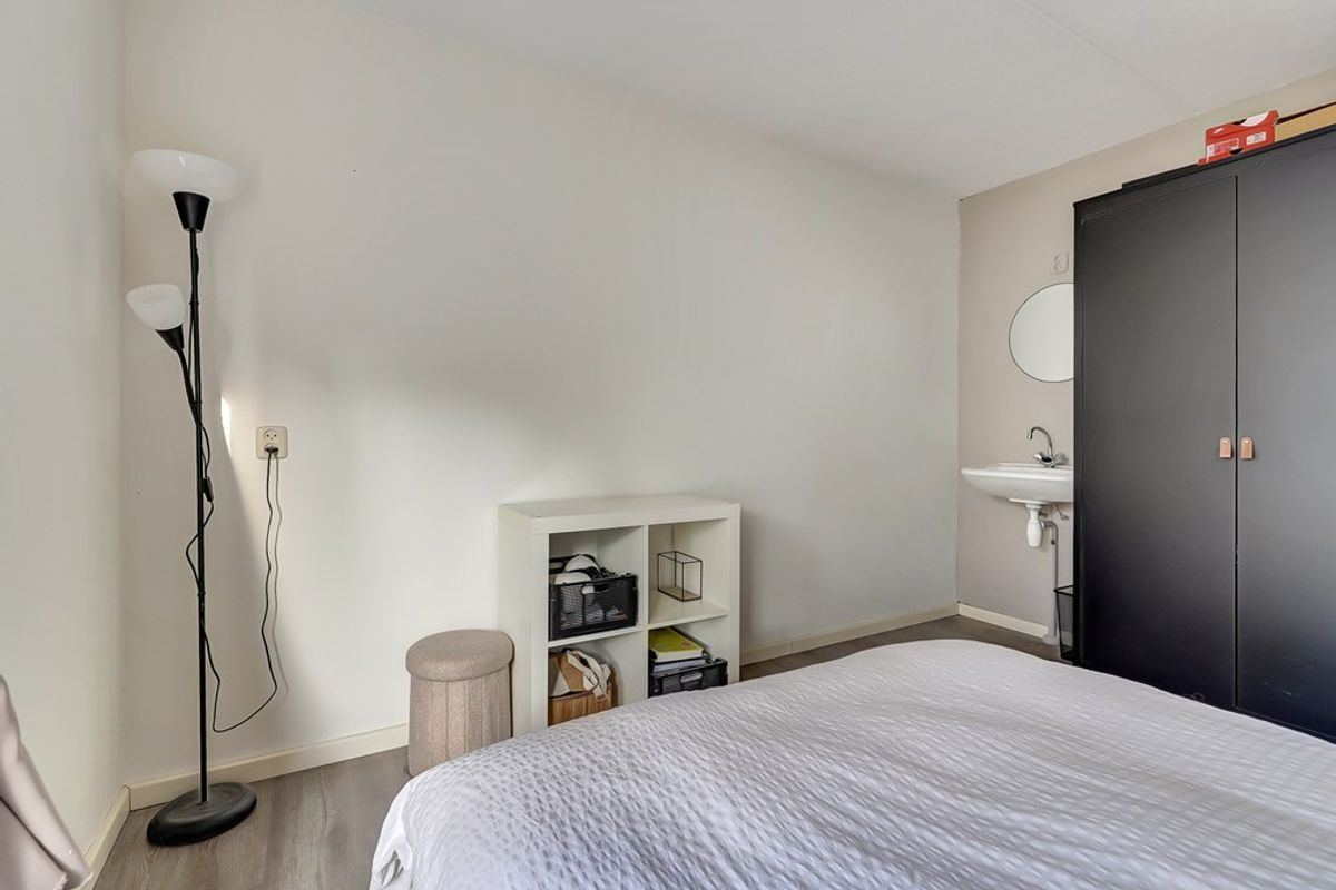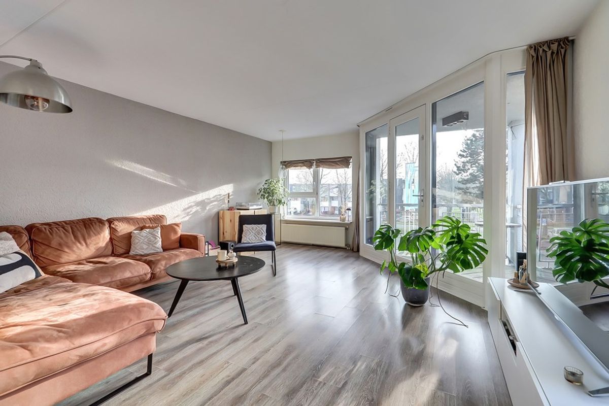 De woonkamer is een prachtige kamer met de hele dag volop lichtinval en is voorzien van een balkon. Vanaf het balkon kijk je lekker weg over het centrum en kun je meegenieten van de gezelligheid die daarbij hoort.