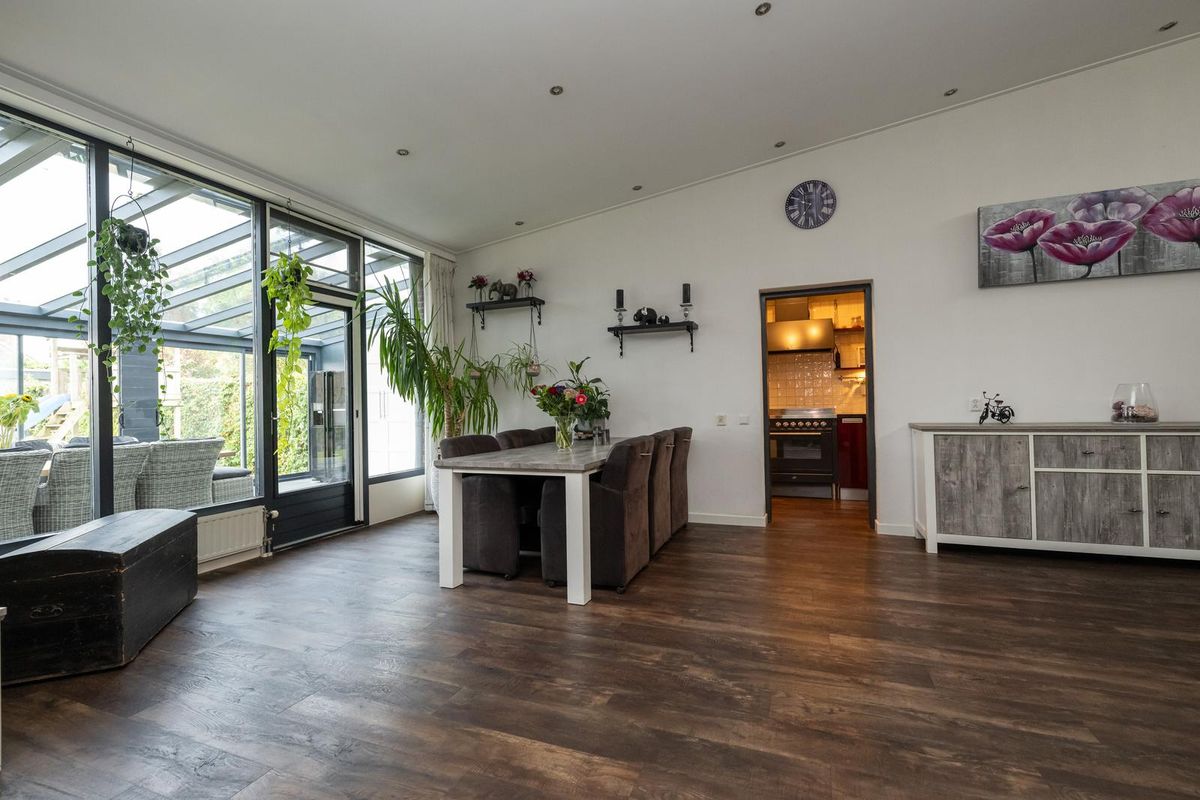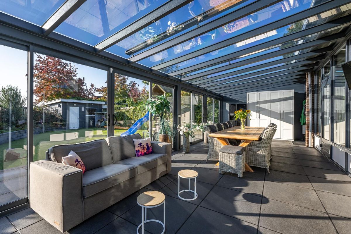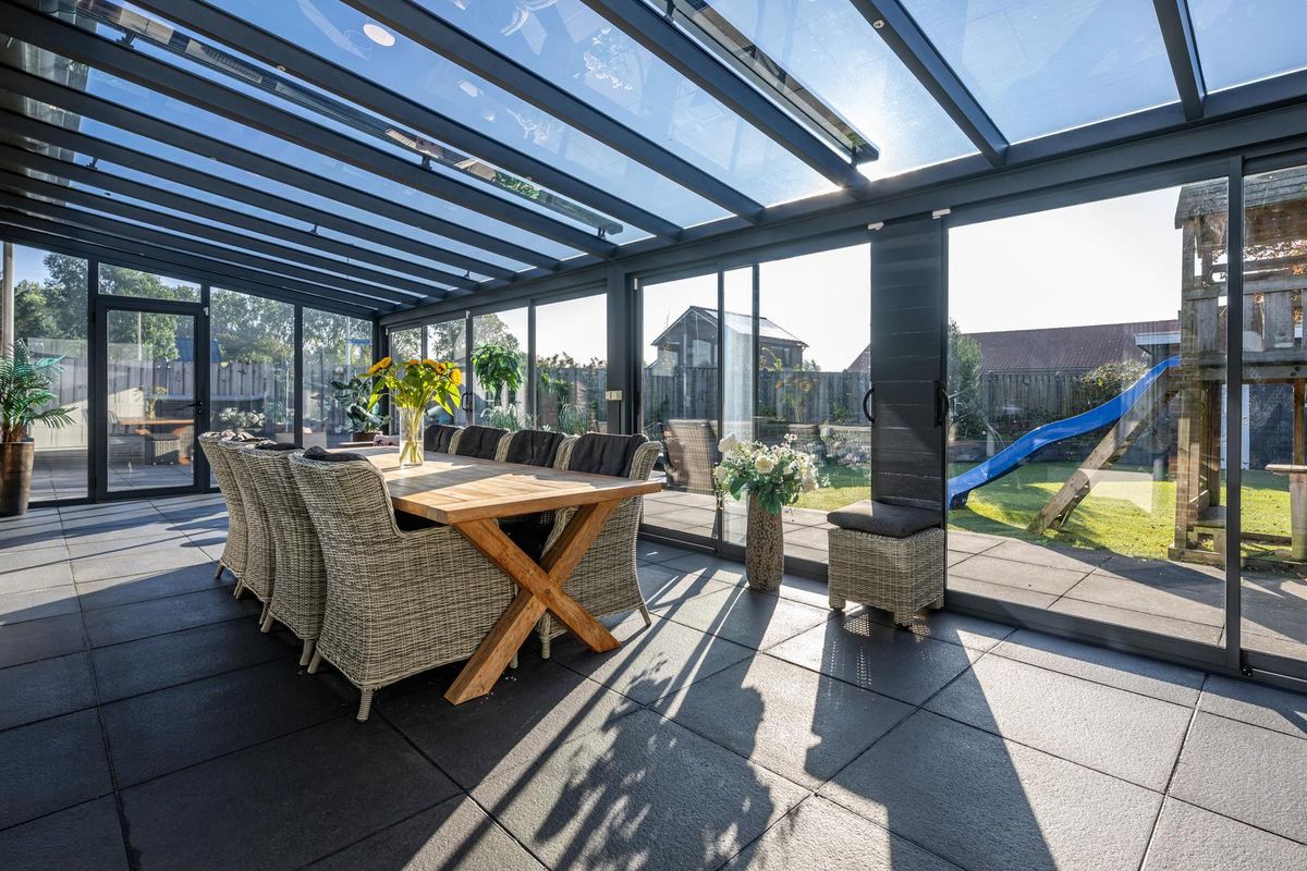 De woonkamer vormt het hart van het huis: een royale, lichte ruimte die grenst aan de serre. Deze serre is een heerlijk verlengstuk van de leefruimte en nodigt uit om elk seizoen van dichtbij mee te maken – van de eerste zonnestralen in de lente tot knusse herfstavonden met een kop thee. Vanuit de woonkamer loop je door naar de keuken en praktische berging. En niet te vergeten: de inpandige garage, die niet alleen plek biedt voor de auto, maar ook volop ruimte geeft voor hobby’s of extra bergruimte.