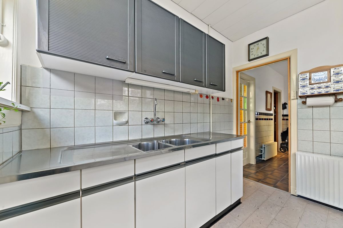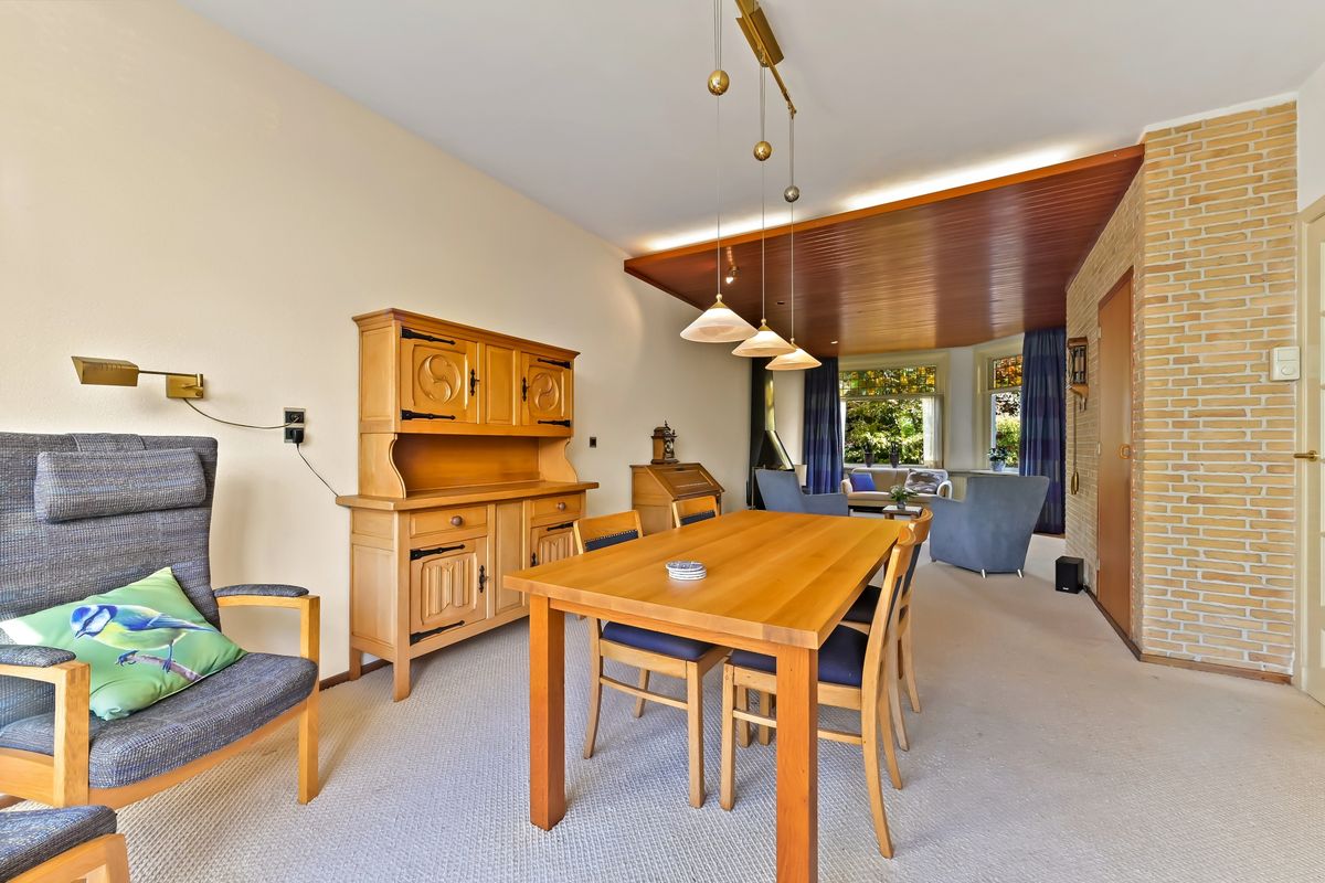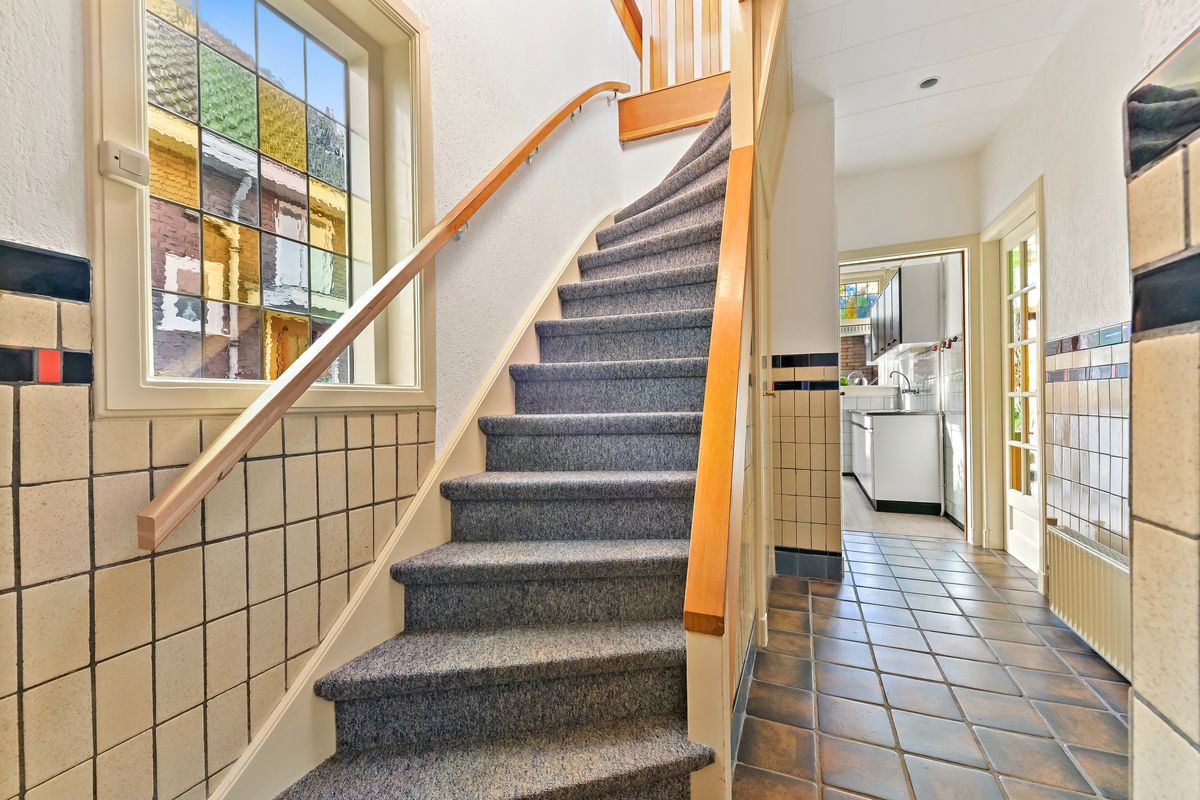 Riante, fraai aangelegde voortuin met parkeergelegenheid voor meerdere auto’s. Via de entree met diverse mooie jaren ’30 sfeerelementen aan de voorzijde betreedt u de woning. Onder de trap naar de 1e verdieping is een kelderruimte aanwezig. De woonkamer straalt warmte en karakter uit, met voldoende ruimte voor een zit- en eethoek. Vanuit de achterkamer heeft u een prachtig uitzicht op de schitterende achtertuin. De keuken ligt aan de achterzijde en is middels een overkapping verbonden aan de dubbele berging, waarvan de eerste berging in gebruik is als bijkeuken. De tuin is vanuit de keuken en vanuit de woonkamer te bereiken.
