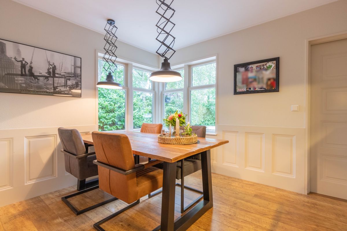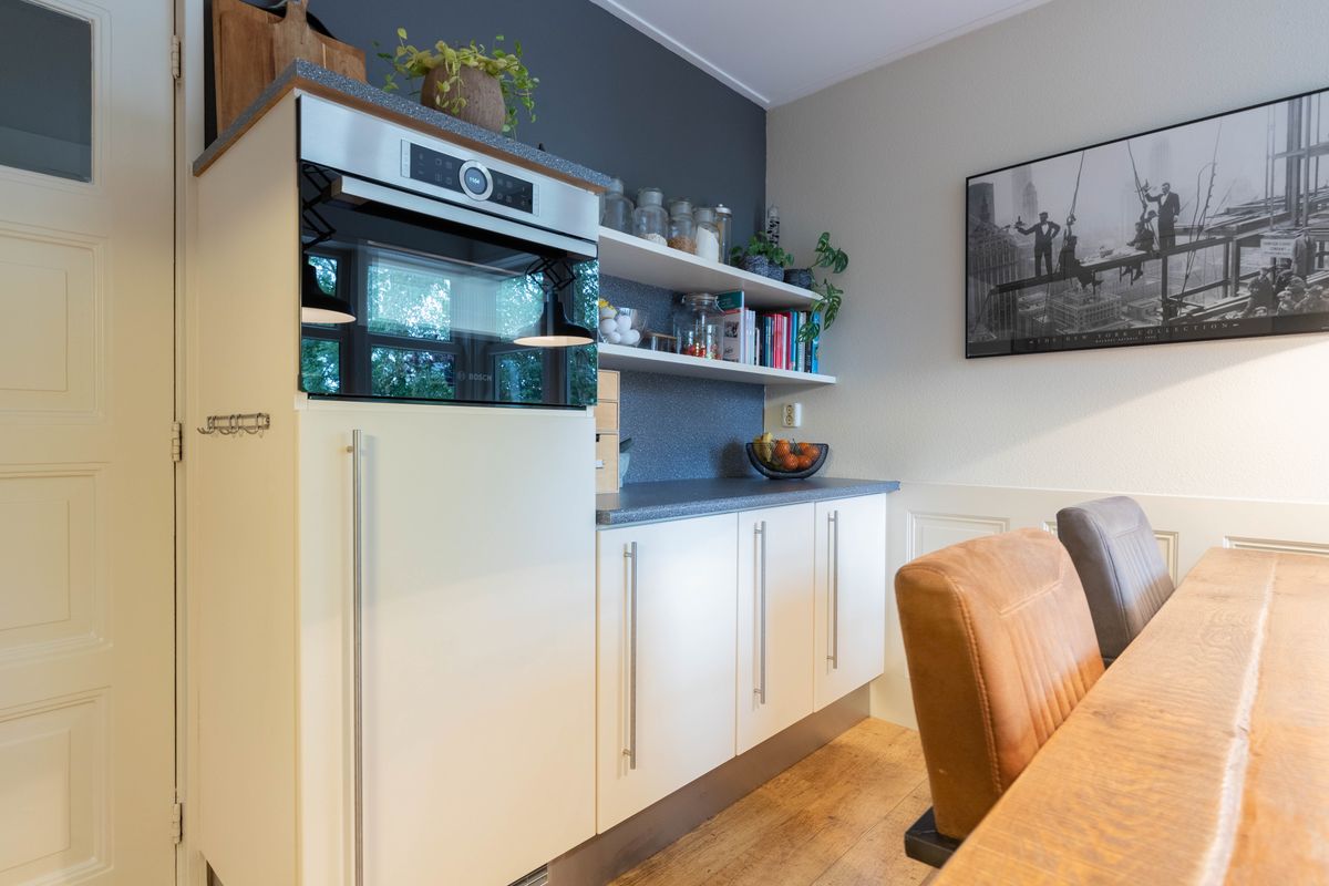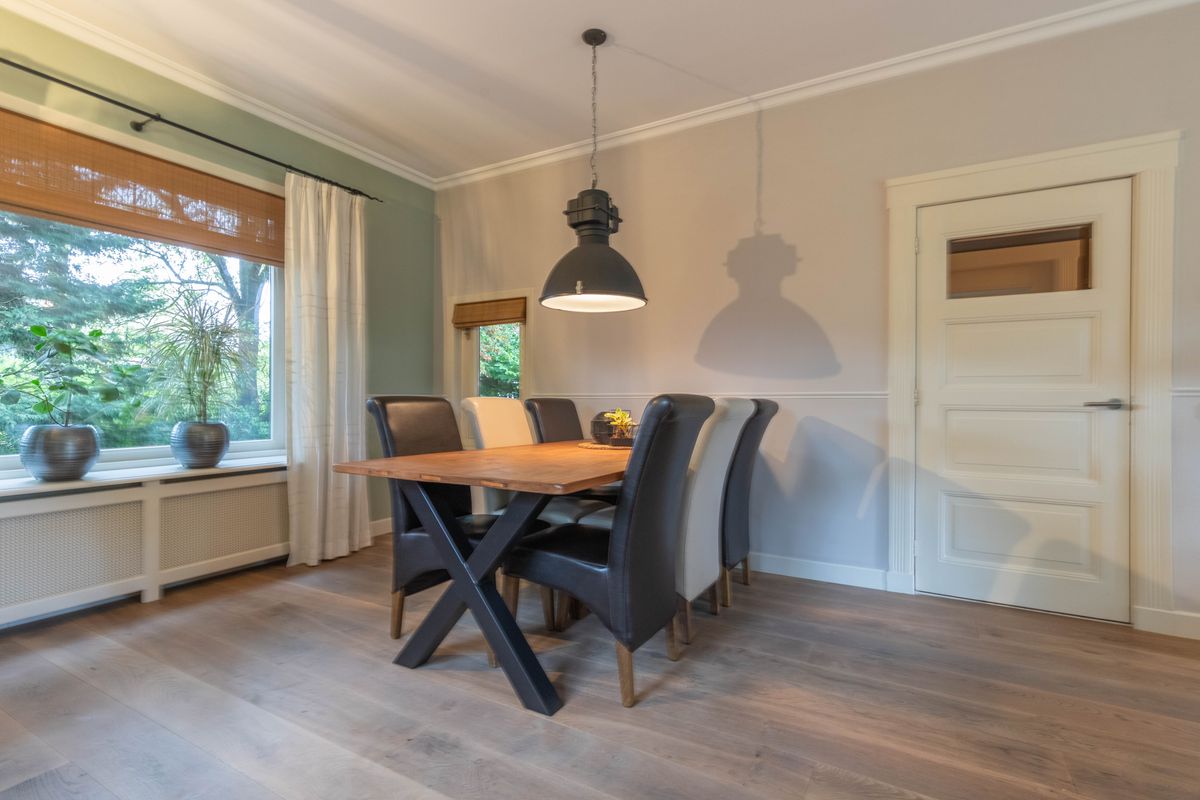 Via de voordeur komt u in de ruime hal met plavuizen vloer. Hier heeft u toegang tot onder meer de woonkamer, keuken, toilet, trapopgang, achtertuin en meterkast (12 groepen). De woonkamer is diep en licht met ramen aan vier zijden. Het heeft een fraaie houten vloerafwerking en naast de radiatoren ook een comfortabele houtkachel. Via de dubbele openslaande deuren komt u in de achtertuin. De aan de andere zijde van de hal gelegen keuken is ruim genoeg om als woonkeuken te dienen. Het beschikt over een elektrische kookplaat, vaatwasser en koelkast. Er is vanuit de keuken ook toegang tot de hal aan de andere kant van de woning. Hier ligt onder meer het kantoor, toegang tot de kelder en tot de stal aan de achterzijde. De stal heeft nog de oude balken en aan de voorzijde is er een werkschuur ingebouwd.