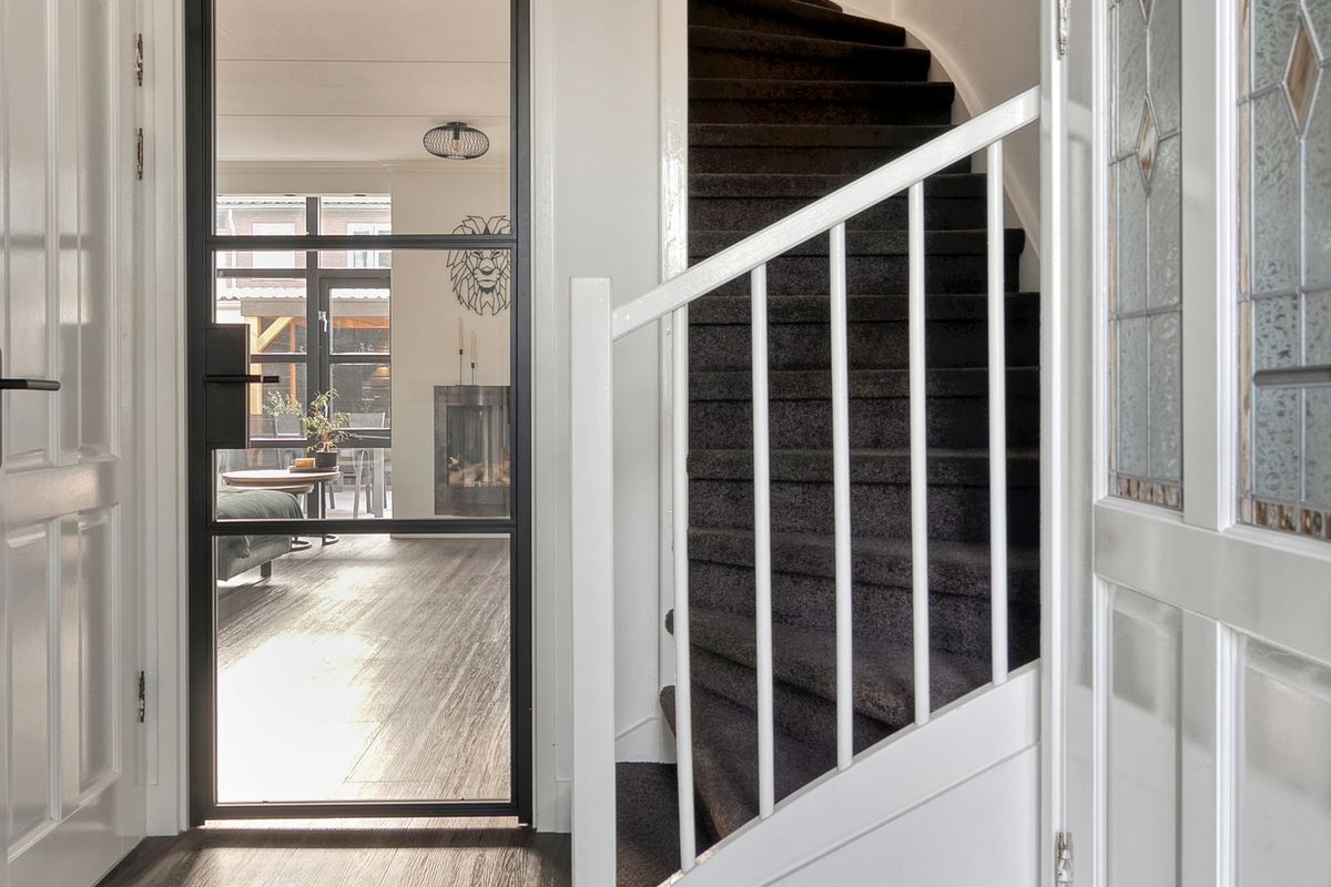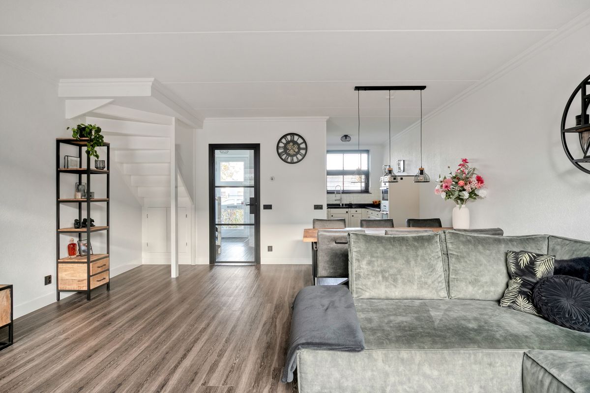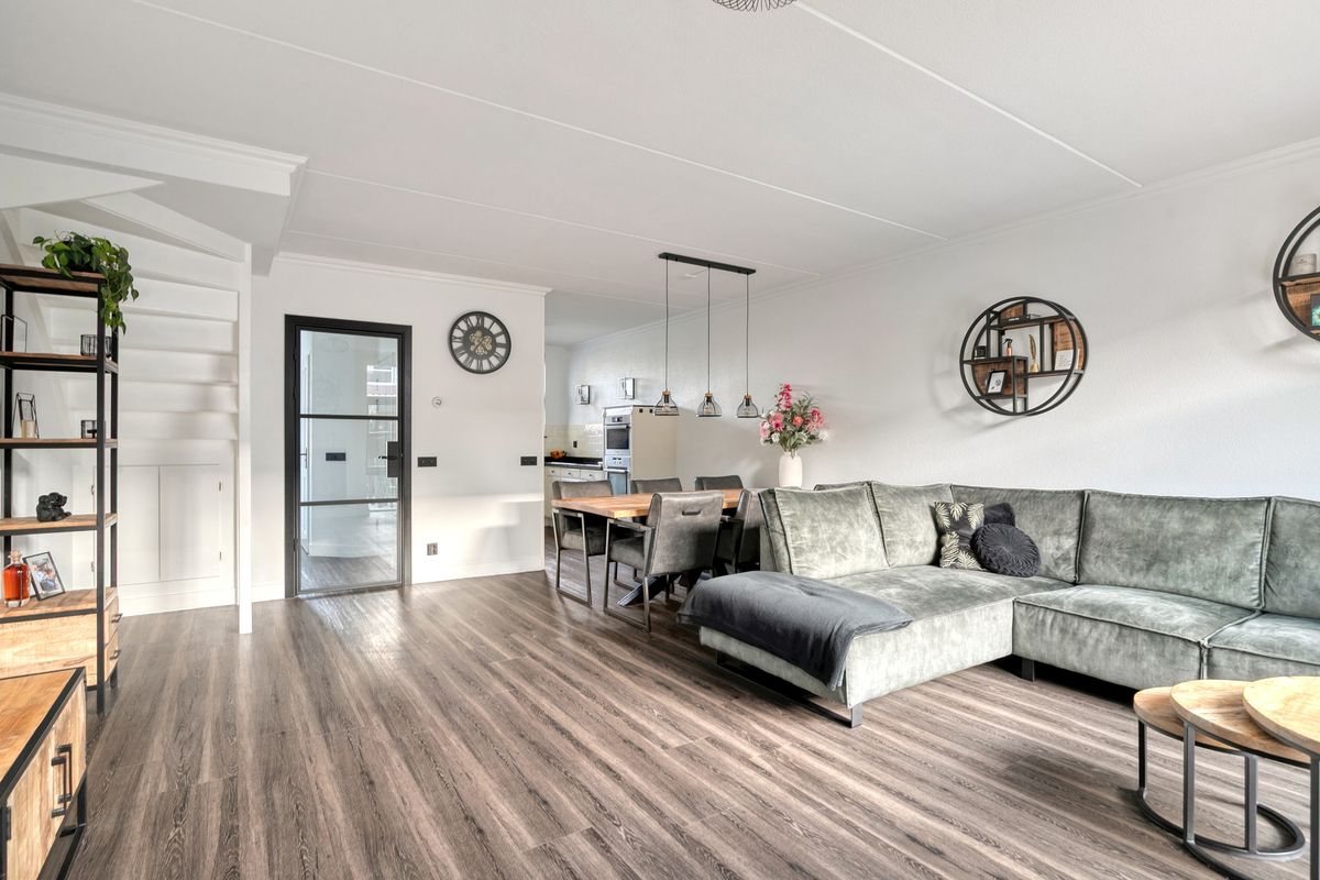 Via de entree komt u in de ruime hal met garderobe, toilet en meterkast. De uitgebouwde woonkamer is heerlijk licht dankzij de grote raampartijen en biedt volop leefruimte voor het hele gezin. De gashaard geeft de ruimte een warme en gezellige sfeer. Dankzij de vloerverwarming geniet u hier het hele jaar van optimaal comfort.