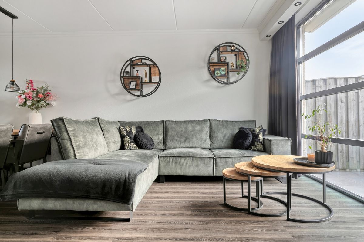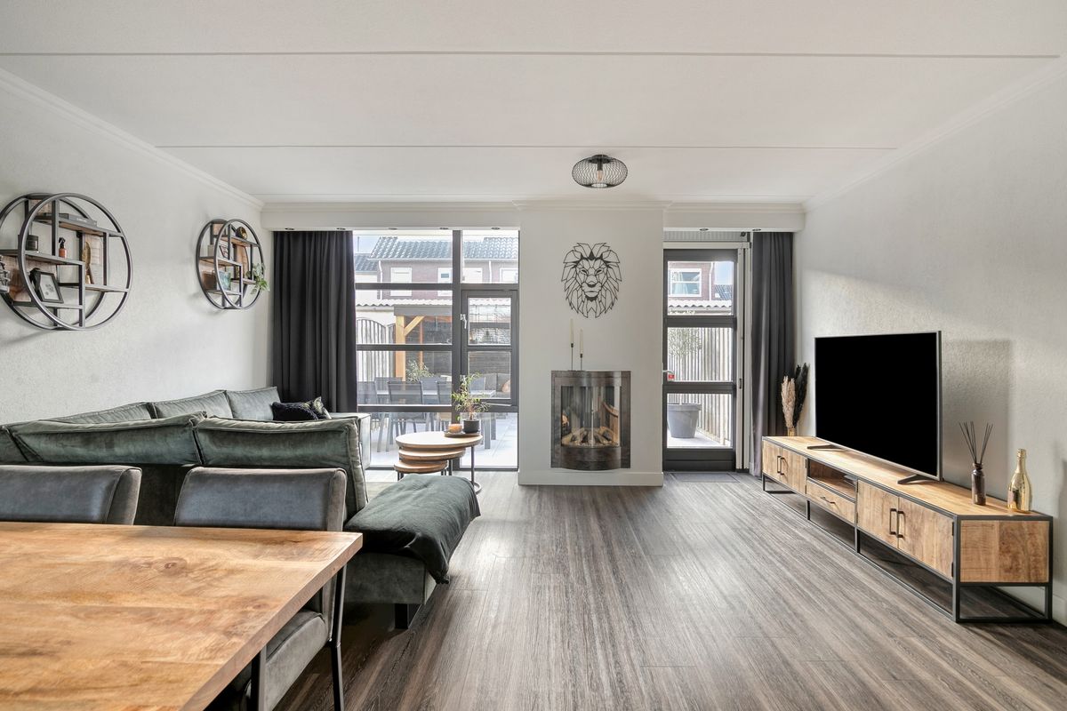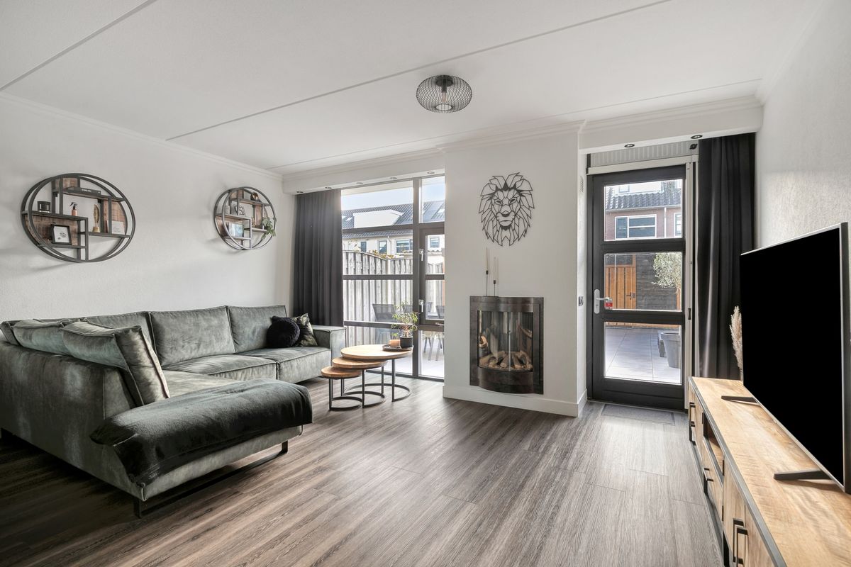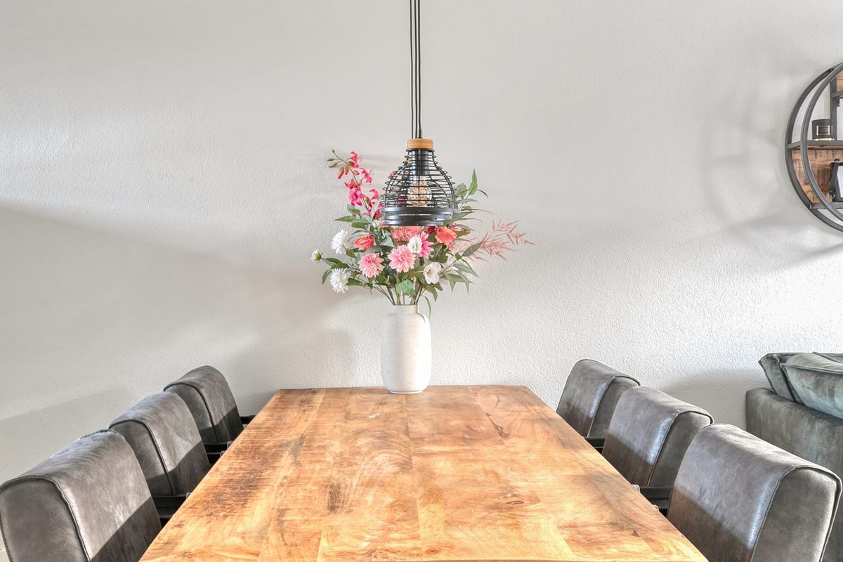 Via de entree komt u in de ruime hal met garderobe, toilet en meterkast. De uitgebouwde woonkamer is heerlijk licht dankzij de grote raampartijen en biedt volop leefruimte voor het hele gezin. De gashaard geeft de ruimte een warme en gezellige sfeer. Dankzij de vloerverwarming geniet u hier het hele jaar van optimaal comfort.