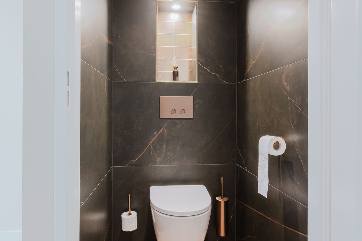 Het toilet is in 2023 gerenoveerd in een chique sfeer en is voorzien van een hangend toilet.