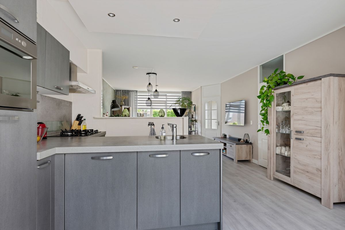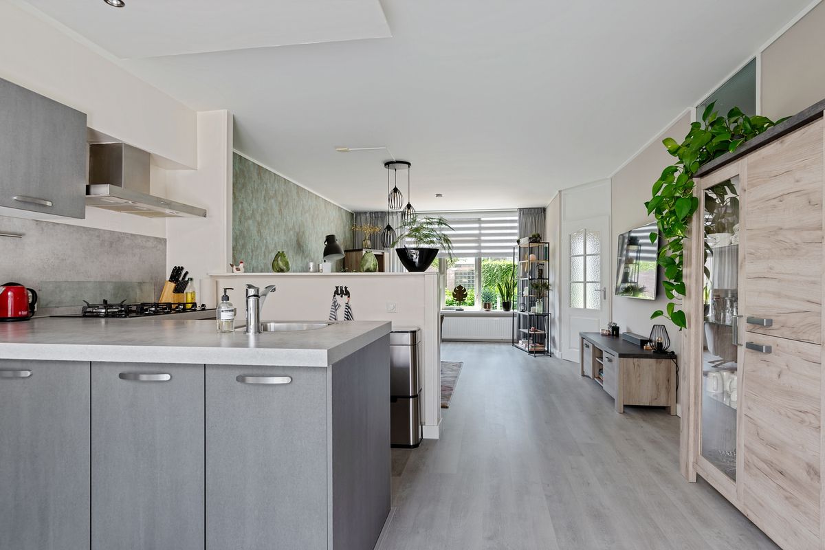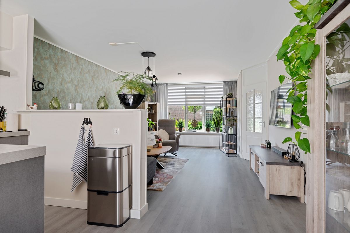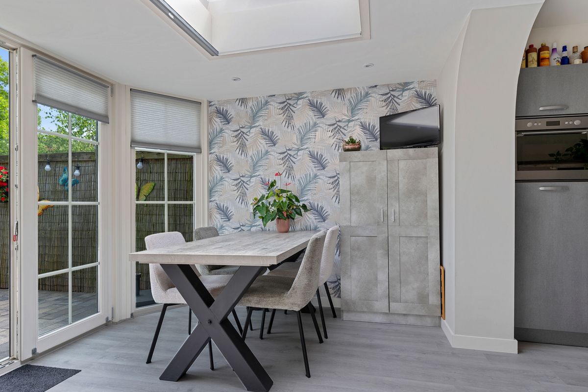 Via de entree met meterkast en trapkast stap je de straatgerichte woonkamer binnen. Dankzij de grote raampartijen geniet je hier van een fijne lichtinval en een prettige leefruimte. De open keuken is voorzien van diverse inbouwapparatuur en sluit perfect aan op de royale tuingerichte eetkamer in de uitgebouwde achterzijde van de woning. Hier is het heerlijk vertoeven: het daklicht zorgt voor extra veel licht en via de dubbele openslaande deuren stap je zo de tuin in.