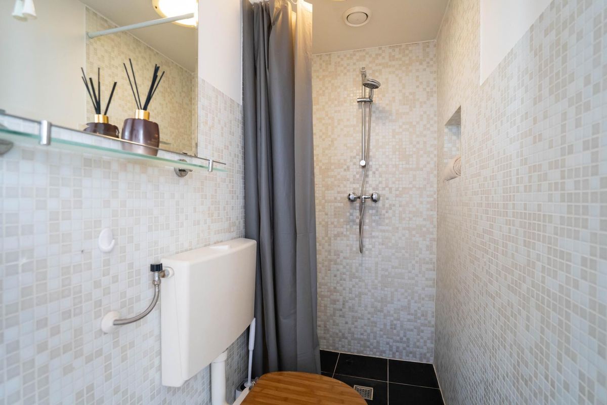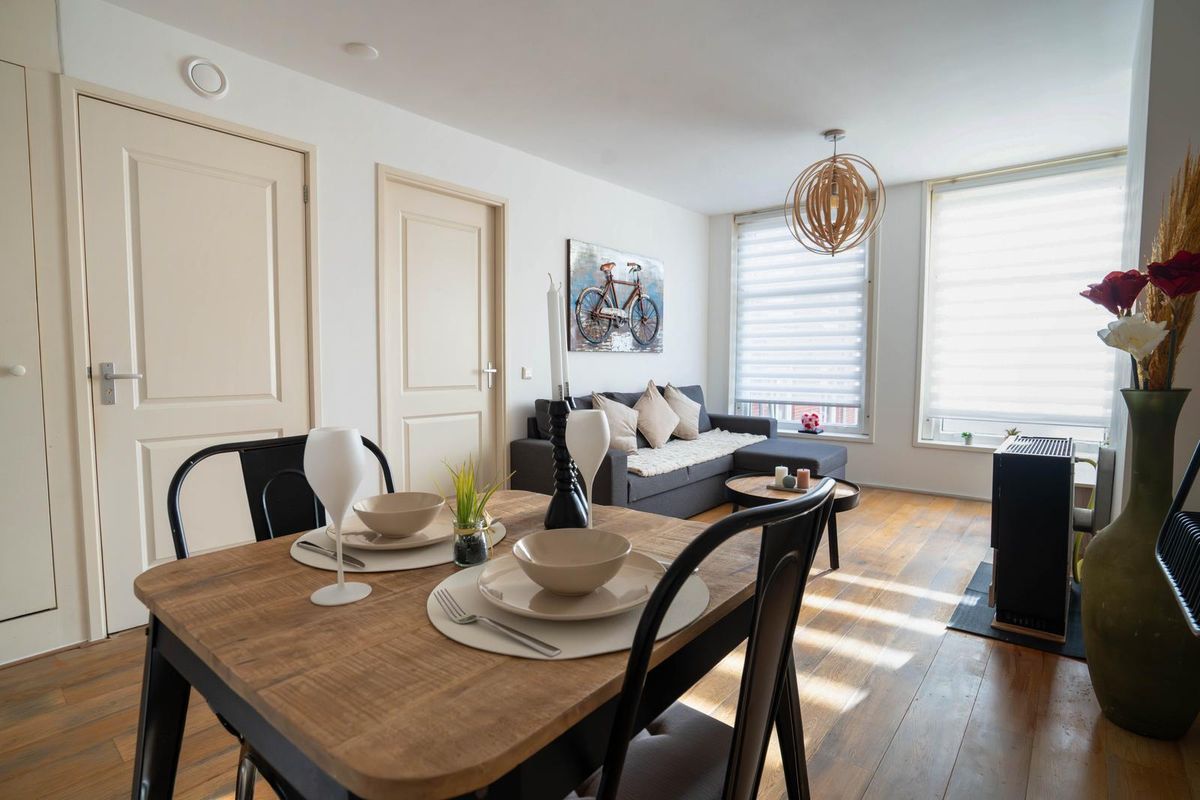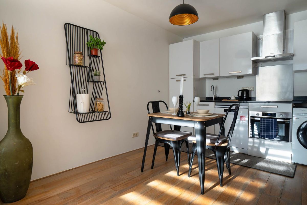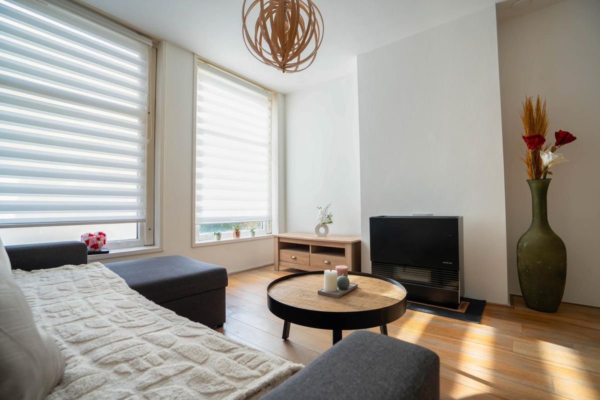 Wanneer je binnenkomt, bevindt de meterkast zich aan de linkerkant. Vervolgens loop je de woonkamer met open keuken binnen. De keuken is uitgerust met diverse inbouwapparatuur en beschikt over een aansluiting voor de wasmachine. Vanuit de woonkamer geven twee deuren toegang tot de slaapkamer en de badkamer met toilet.