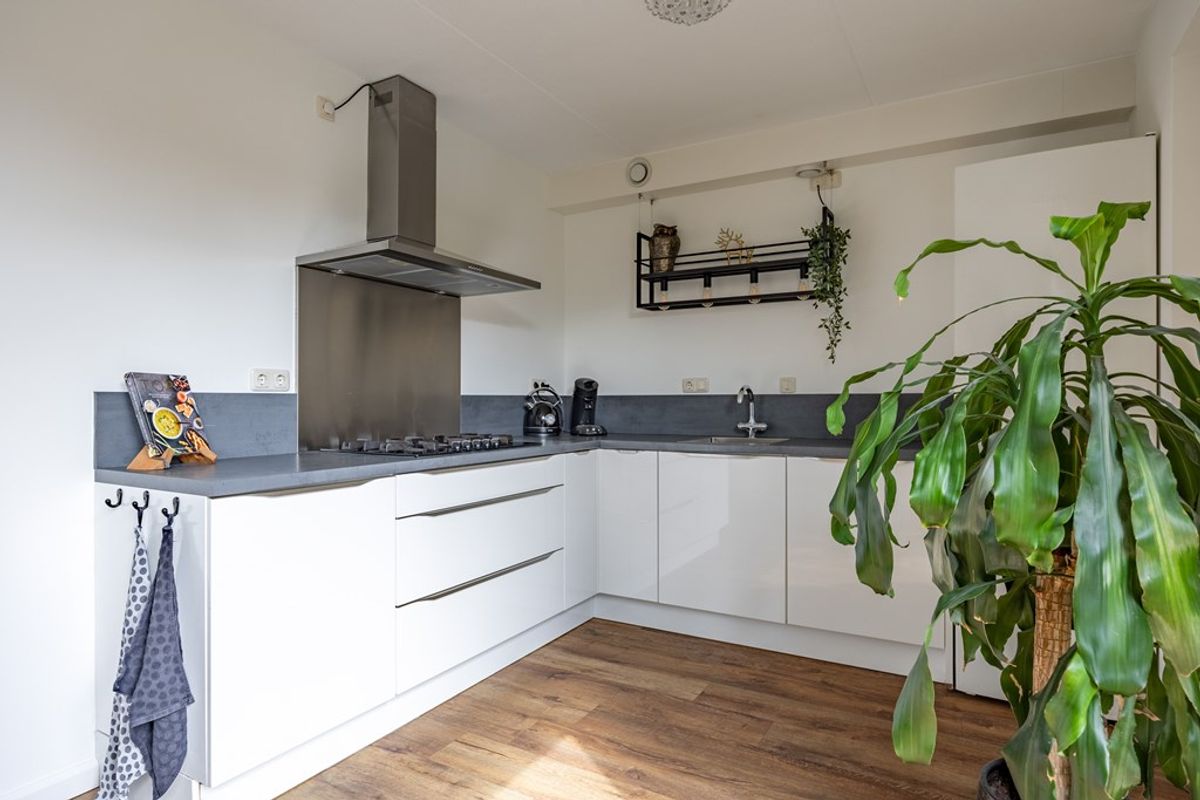 De nette open keuken is voorzien van een gasstel, koelkast en vriezer. De keuken is aangesloten op een praktische bijkeuken met witgoedaansluitingen en toegang tot de tuin en garage. Dankzij deze indeling is er veel werk- en opbergruimte.