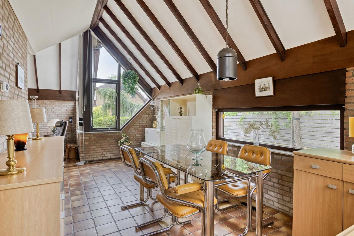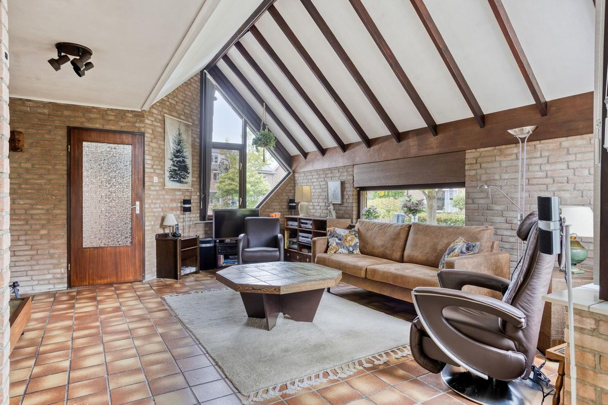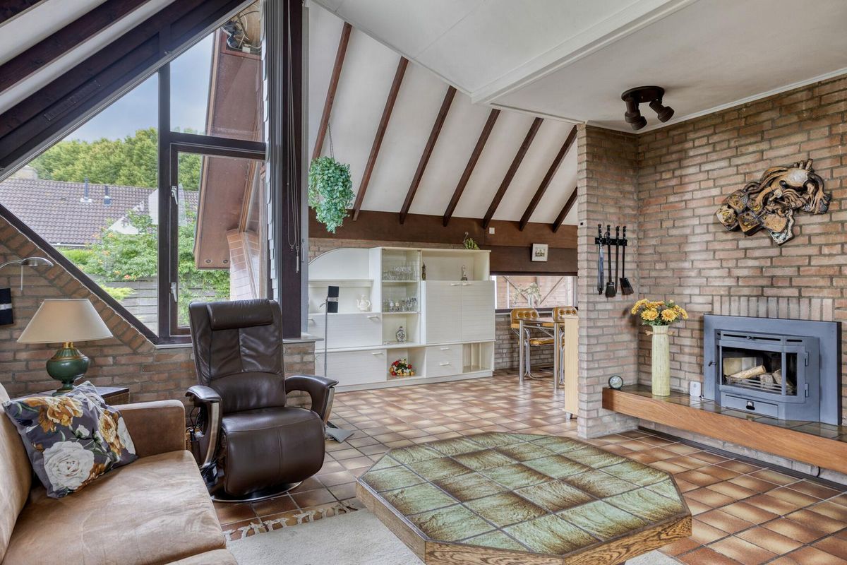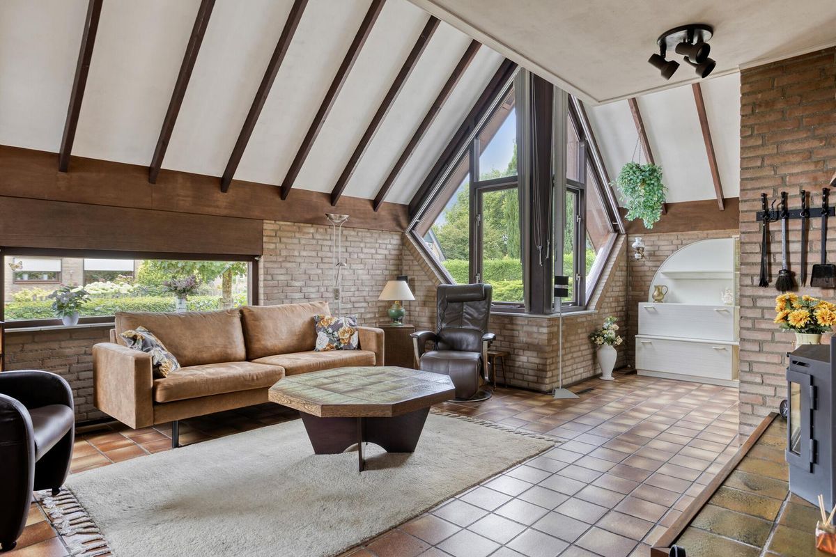 De zichtbare sporenkap en de driehoekige raampartijen zorgen naast sfeer ook voor een mooie hoogte en veel licht in de verschillende ruimtes van het huis. Doordat de woonkamer in open verbinding staat met het eetgedeelte én de keuken is dit een mooie complete leefruimte van zo’n 40 m2.