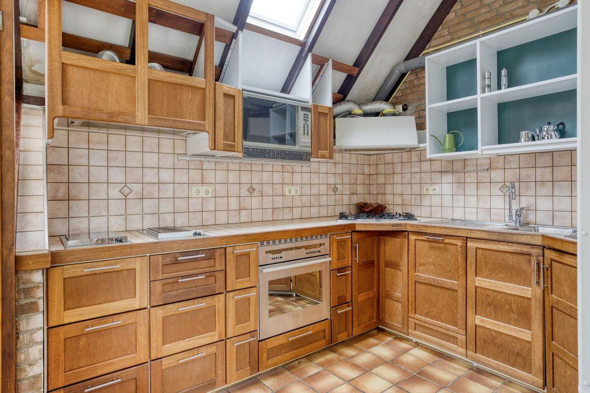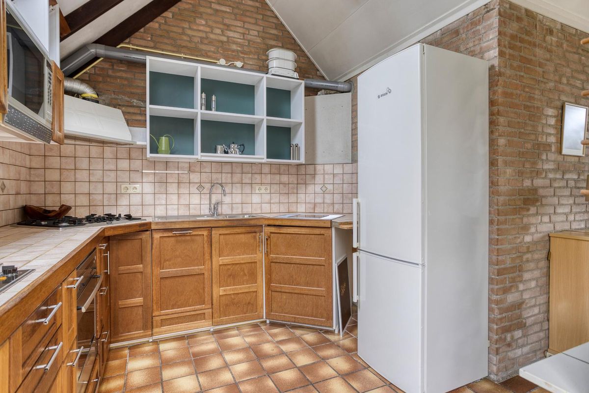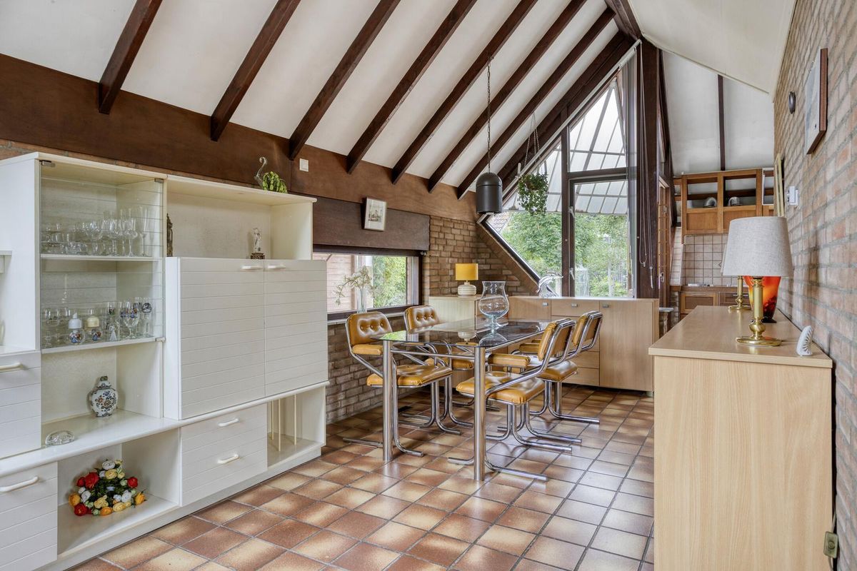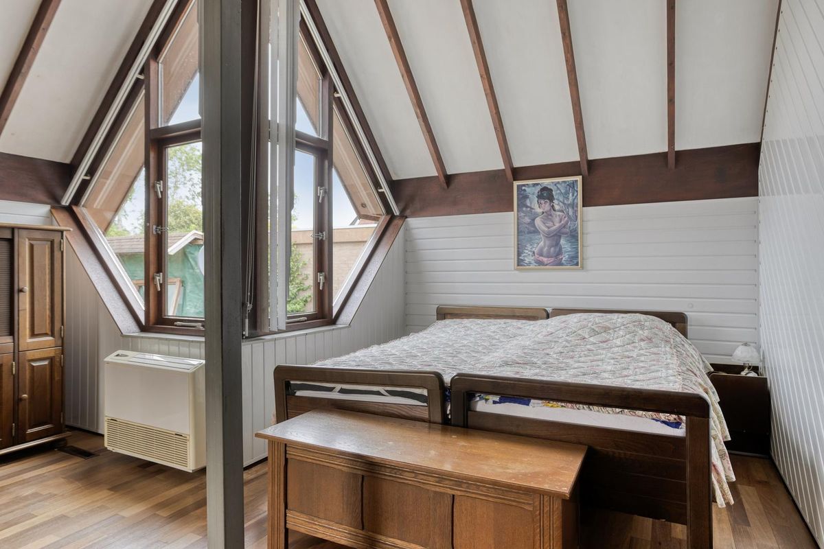 De zichtbare sporenkap en de driehoekige raampartijen zorgen naast sfeer ook voor een mooie hoogte en veel licht in de verschillende ruimtes van het huis. Doordat de woonkamer in open verbinding staat met het eetgedeelte én de keuken is dit een mooie complete leefruimte van zo’n 40 m2.