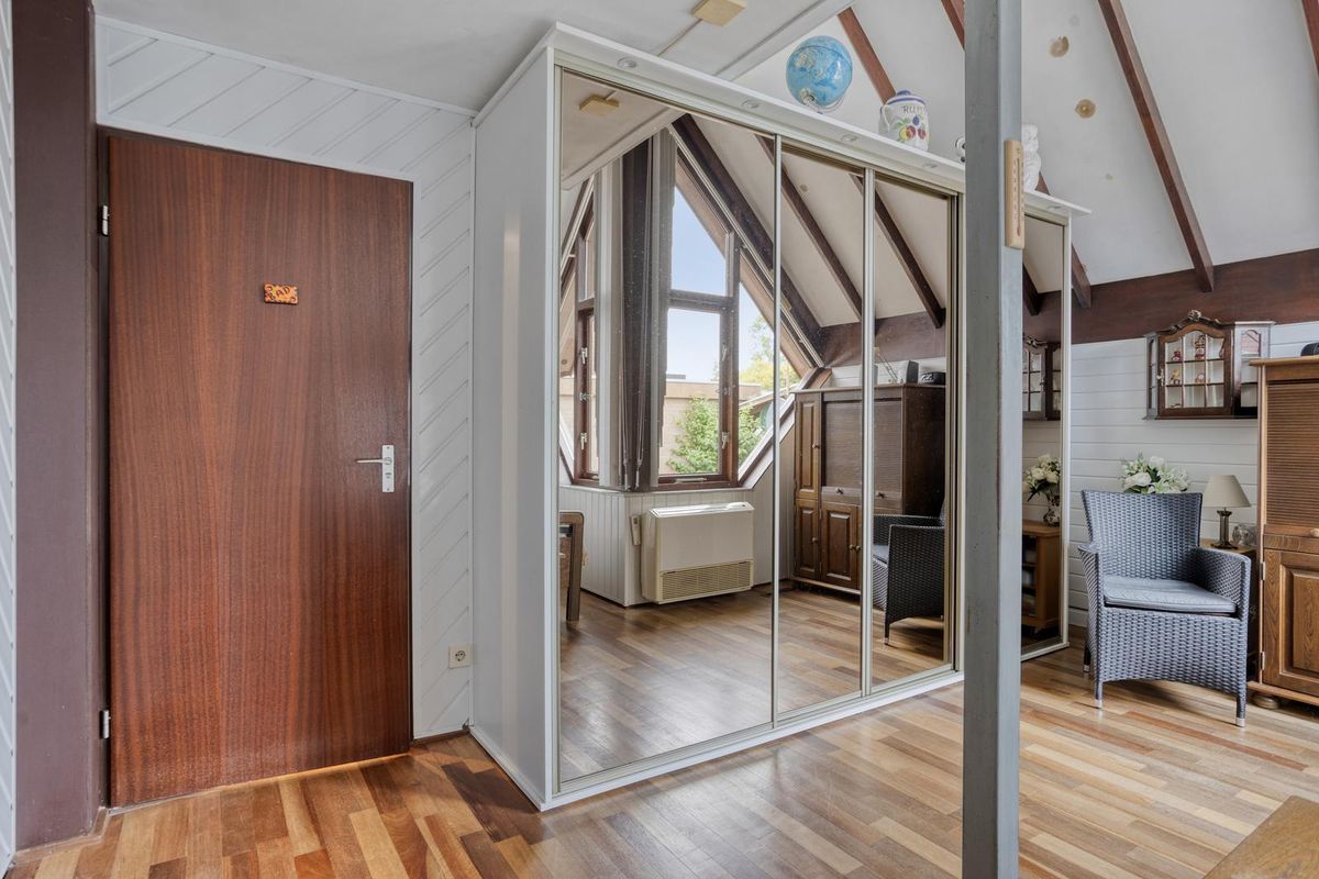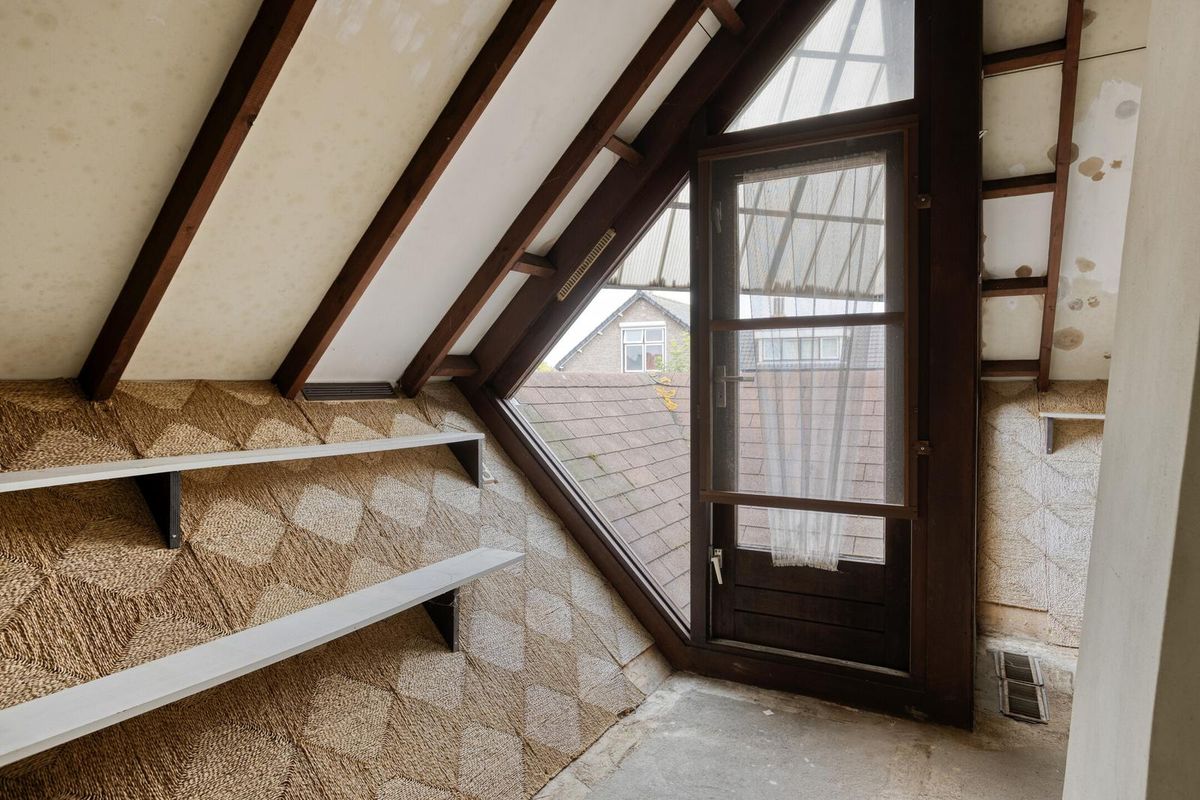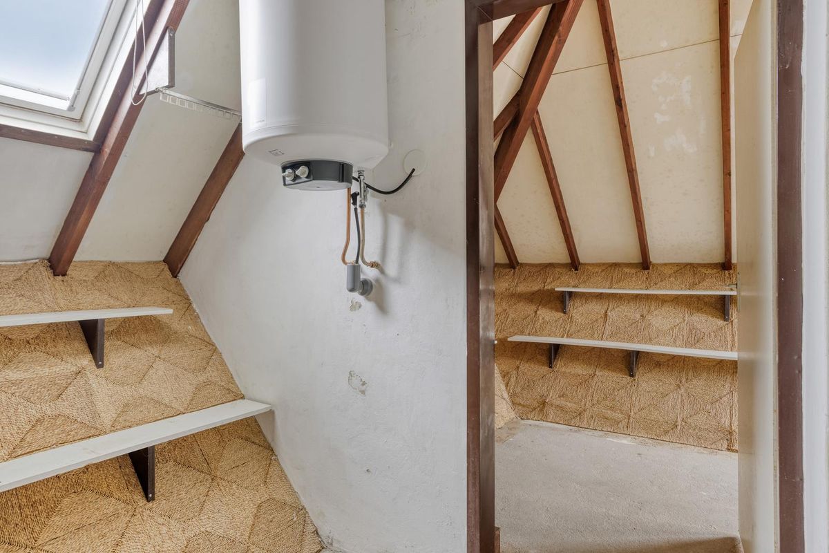 Op de etage is er vanaf de overloop nog een ruime zolderkamer bereikbaar welke prima te gebruiken is als tweede slaapkamer. Deze kamer heeft naast een eigen wastafel toegang tot een balkon van ongeveer 5 m2. Op de overloop hangt de elektrische boiler (huur) ten behoeve van het warme water.