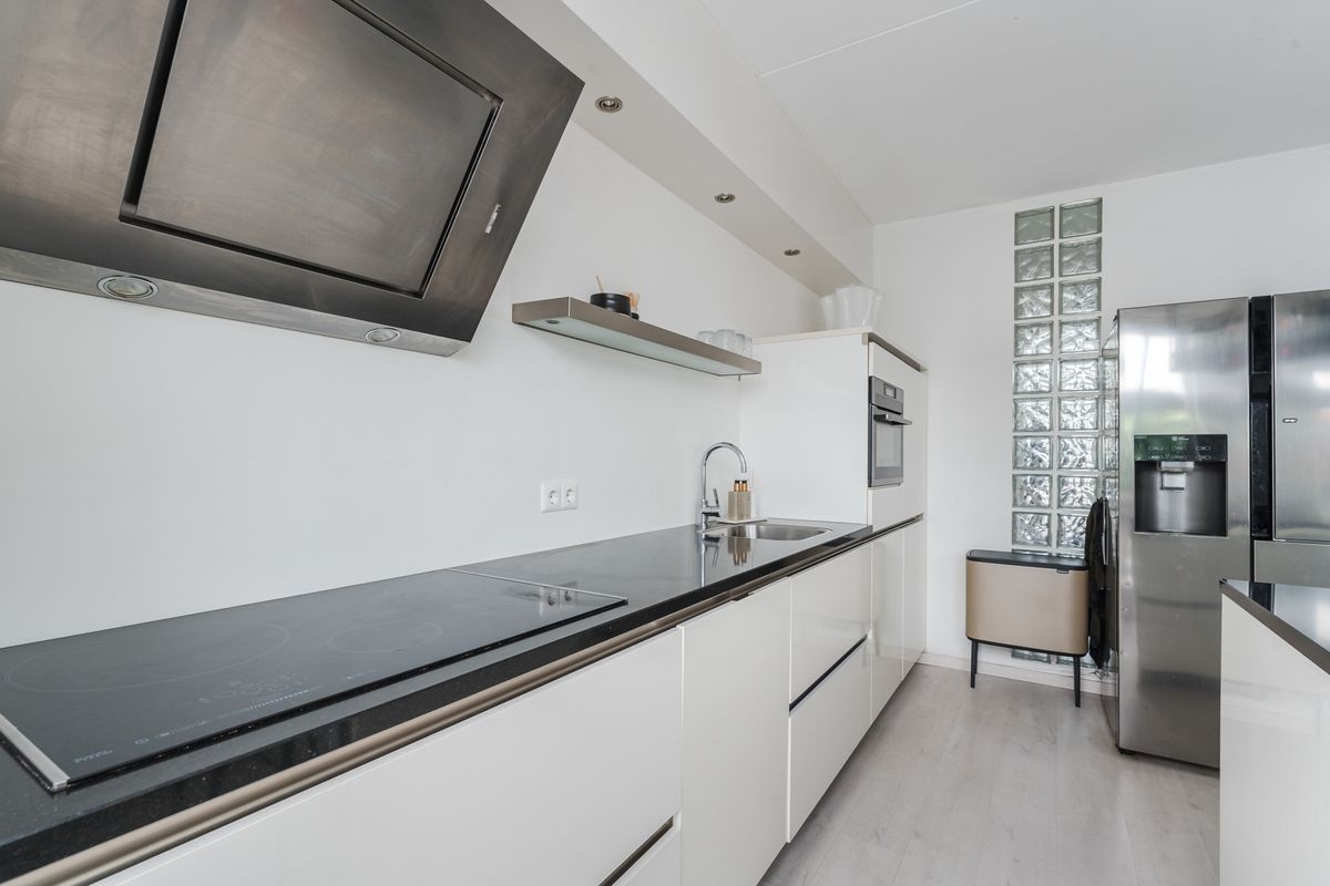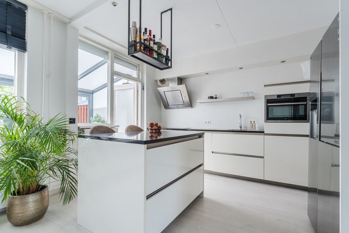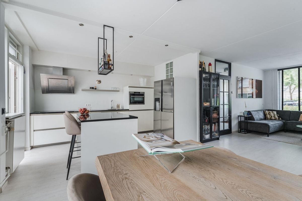 • Lichte woonkamer met open woonkeuken met eiland en volop moderne inbouwapparatuur.