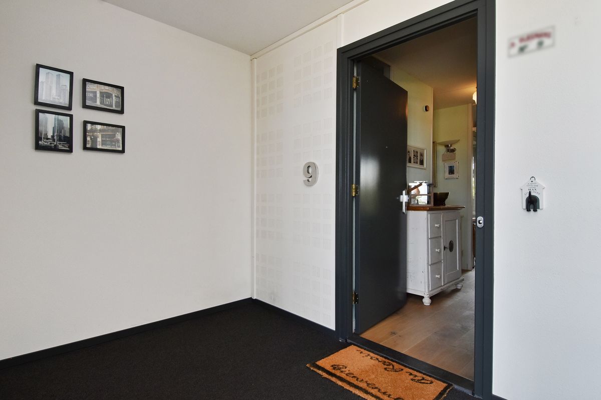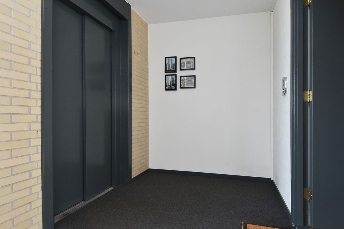 Je komt binnen via de verzorgde, afgesloten entree met brievenbussen en bellentableau. De centrale hal geeft toegang tot het trappenhuis en de lift, die je naar de derde verdieping brengt.