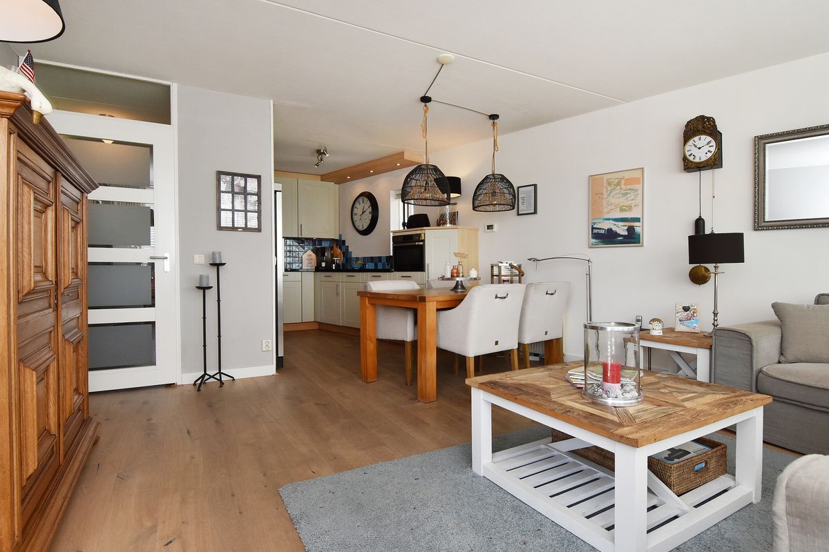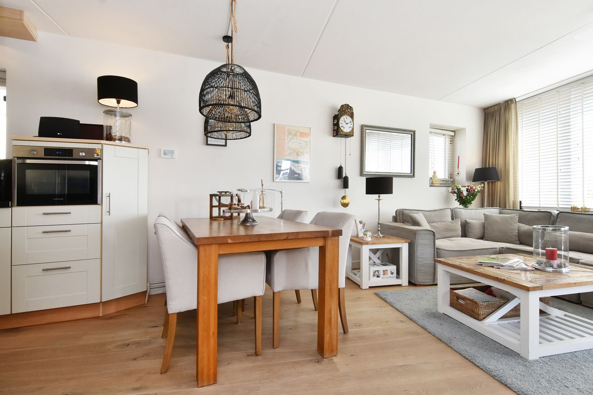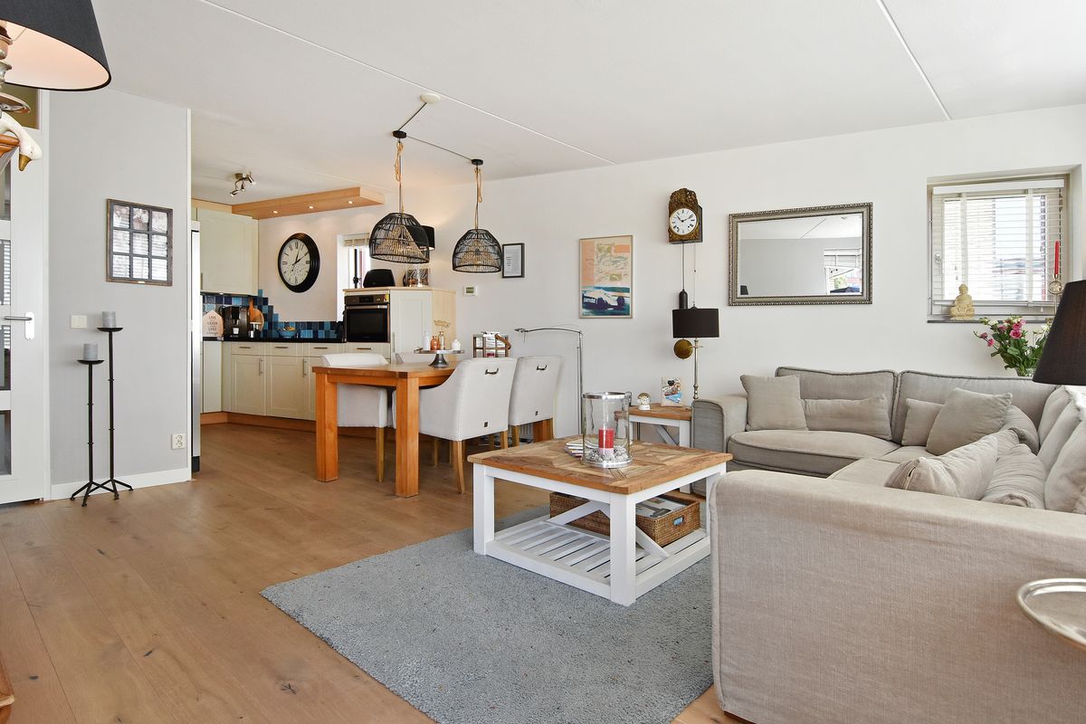 De woonkamer biedt veel lichtinval en heeft door de grote raampartijen een prachtig, vrij uitzicht over de omgeving, kortom een heerlijke plek om te ontspannen.