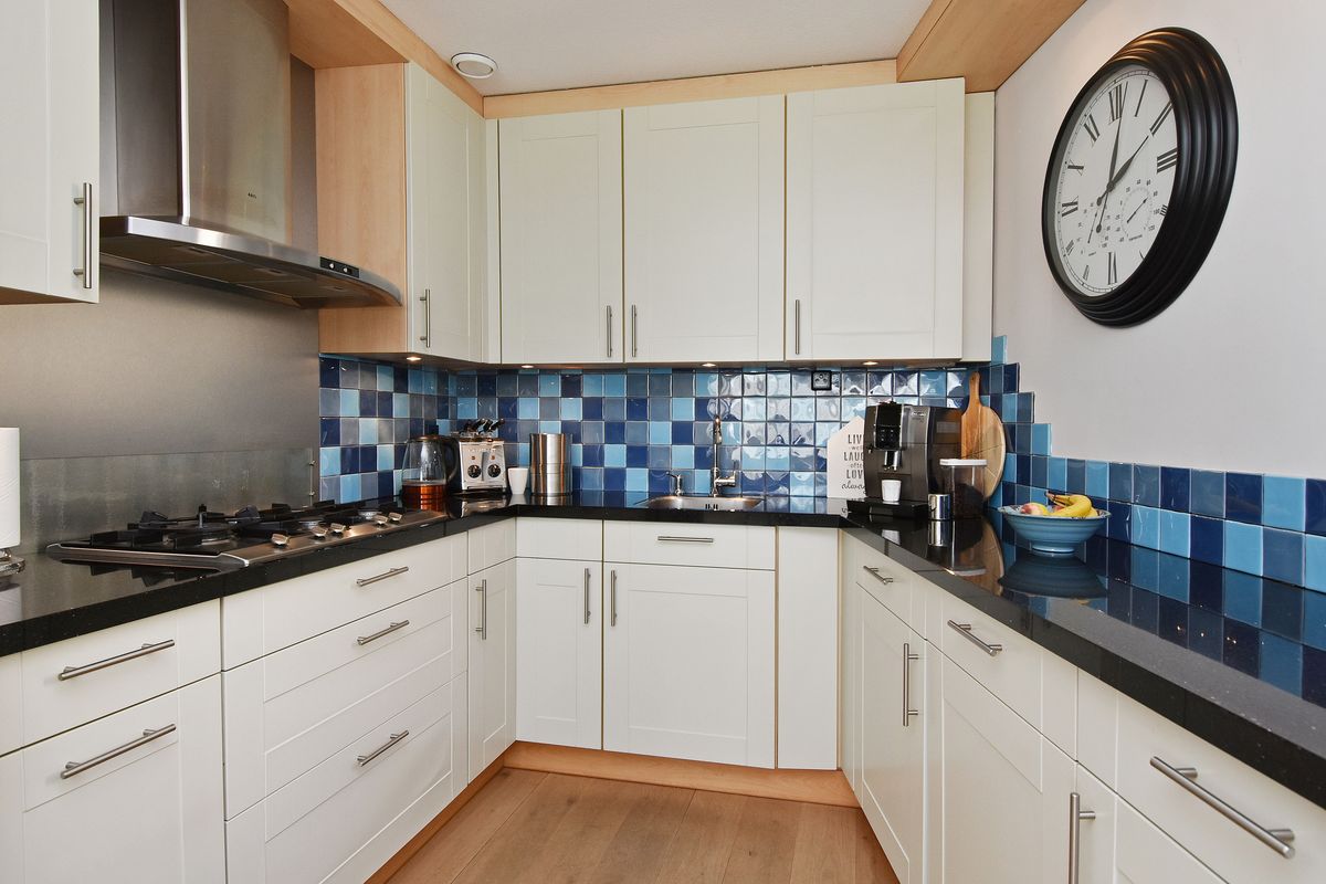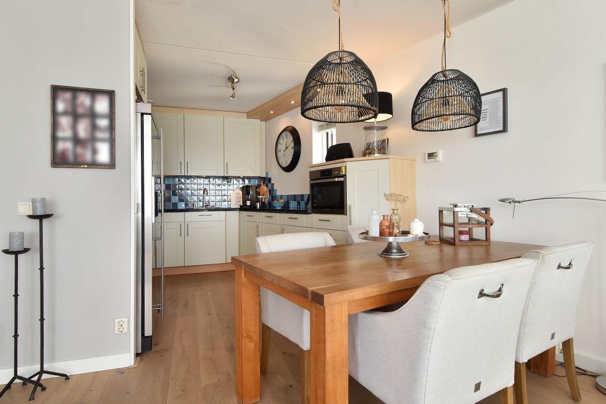 De open keuken in U-opstelling sluit hier naadloos op aan en is van alle gemakken voorzien: een Amerikaanse koelkast, vaatwasser, 5-pits gaskookplaat en een combi oven-magnetron. Ideaal voor wie graag kookt en geniet van ruimte!