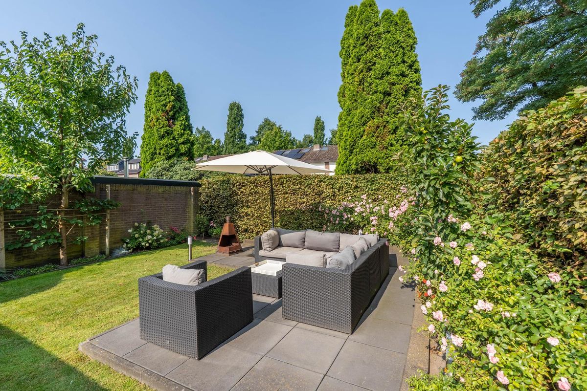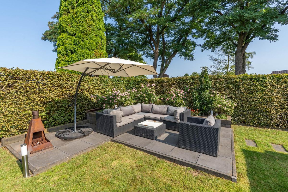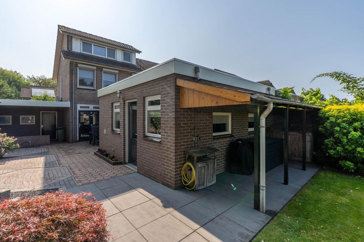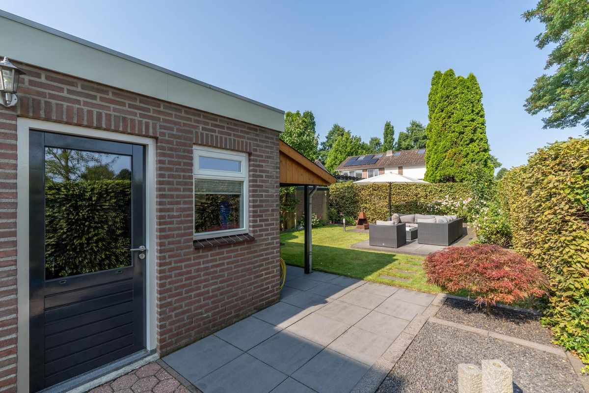 Bij aankomst valt meteen de ruime oprit op, waar plek is voor maar liefst twee auto's. Aan de zijkant van de woning vind je een handige achterom die zelfs twee deuren breed is, ideaal voor bijvoorbeeld het stallen van fietsen of het naar binnen brengen van tuinspullen. In de tuin kom je eerst langs een knus terras, perfect voor een kop koffie in de ochtendzon. Daarnaast is de tuin is voorzien van een beregeningsinstallatie die is aangesloten op de grondwaterpomp. De keuken en multifunctionele ruimte zijn beide vanuit de tuin bereikbaar, wat het buitenleven nóg makkelijker maakt. Achterin de tuin is een tweede terras, waar je heerlijk kunt ontspannen. En voor de praktische kant: er is ook een overkapping én een berging aanwezig. Verder is er ook camera beveiliging aanwezig.