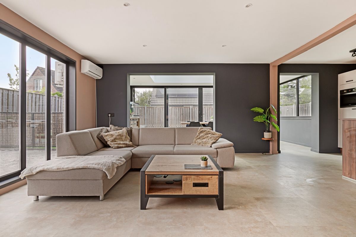 - Tuingerichte woonkamer met schuifpui en toegang tot de tuin