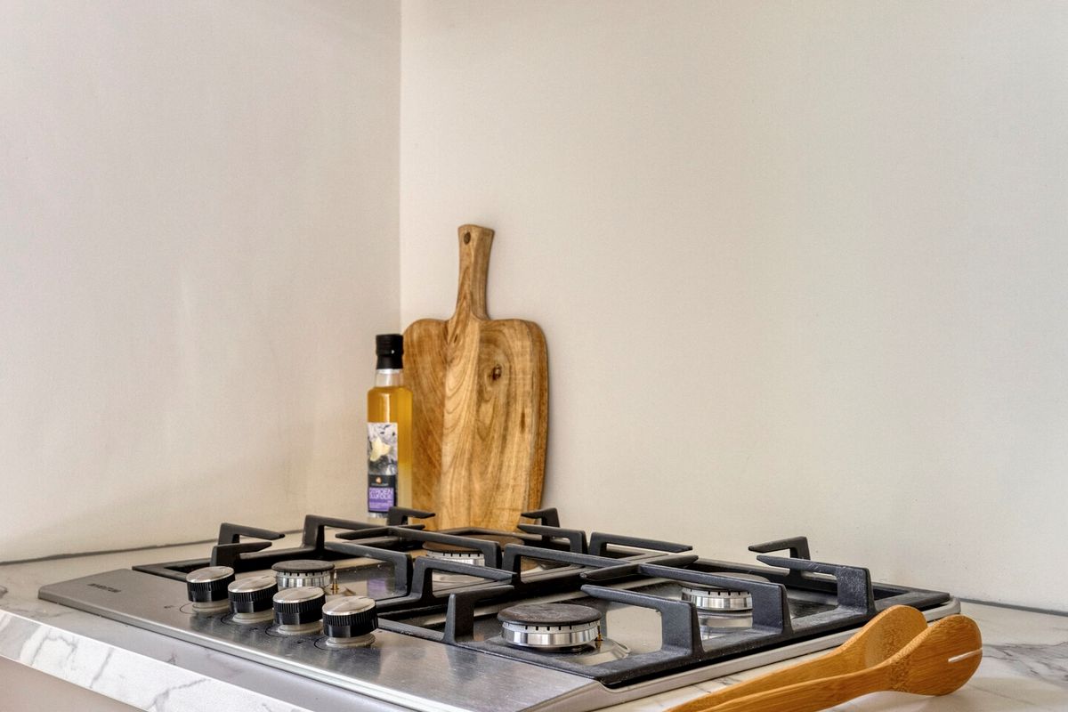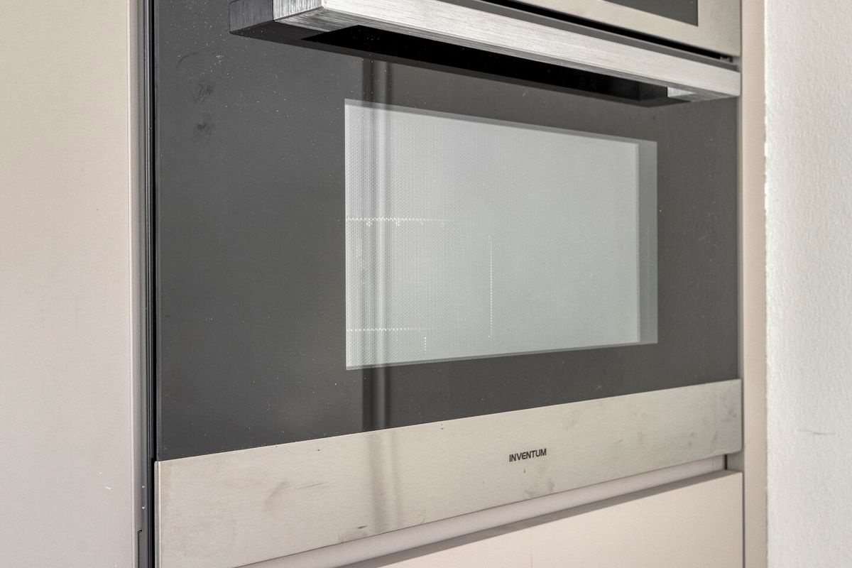 De open keuken biedt volop opbergruimte met diverse onderkasten en lades. De keuken is compleet uitgerust met een 4-pits gaskookplaat, rvs afzuigkap, vaatwasser, combi-oven en koelkast.