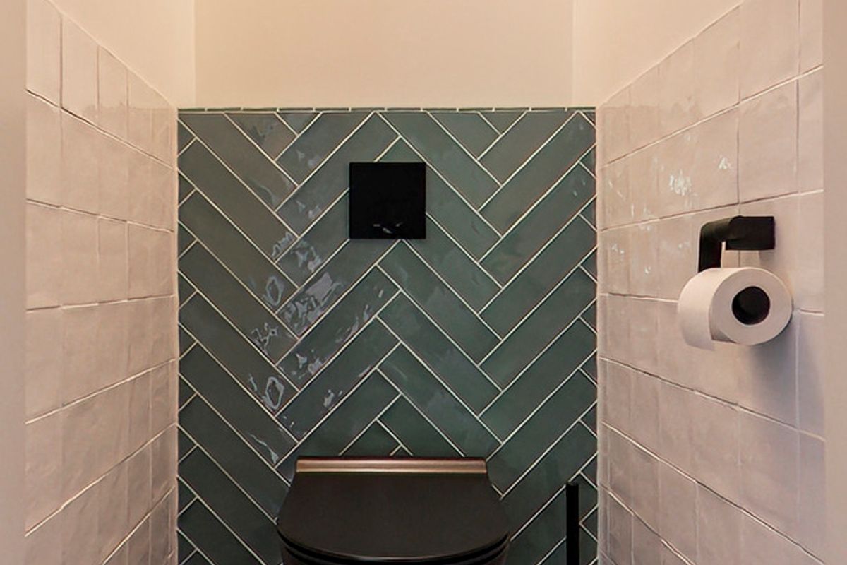 De vernieuwde badkamer is een eyecatcher: modern uitgevoerd met elektrische vloerverwarming, inloopdouche, design wastafel, toilet en speels tegelwerk in visgraatmotief. Alles straalt kwaliteit en sfeer uit.