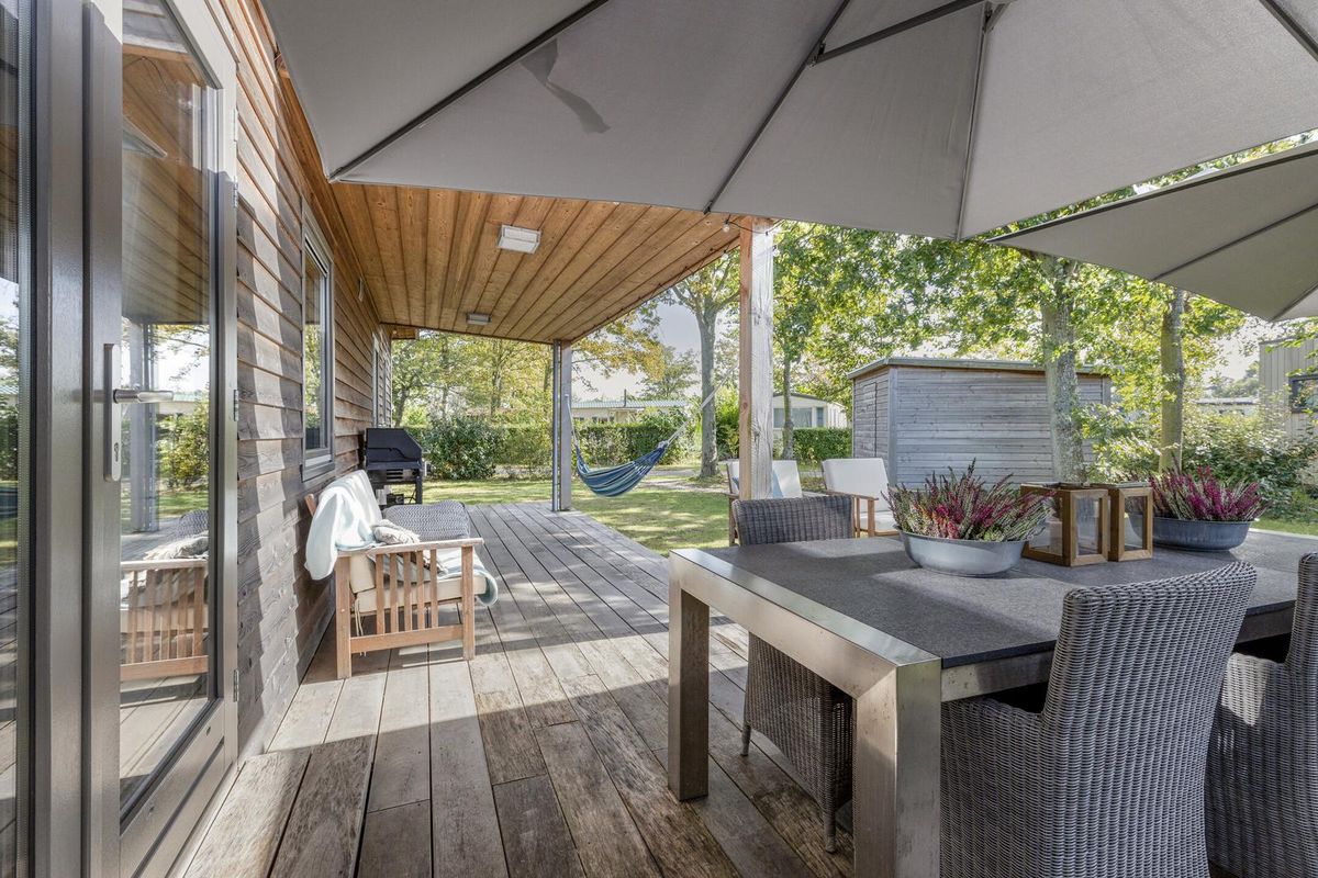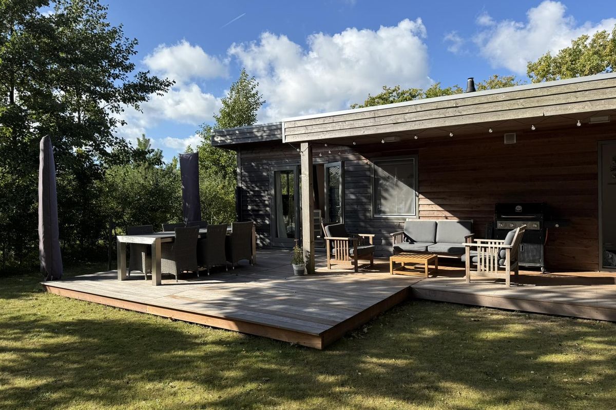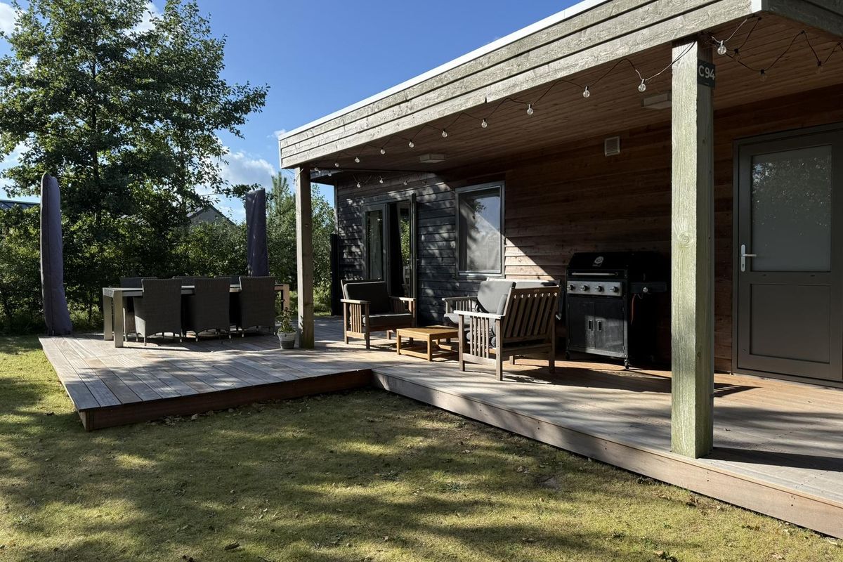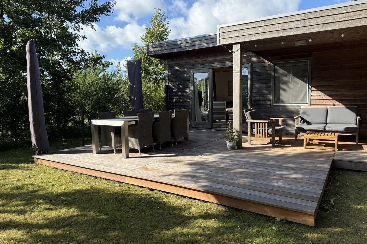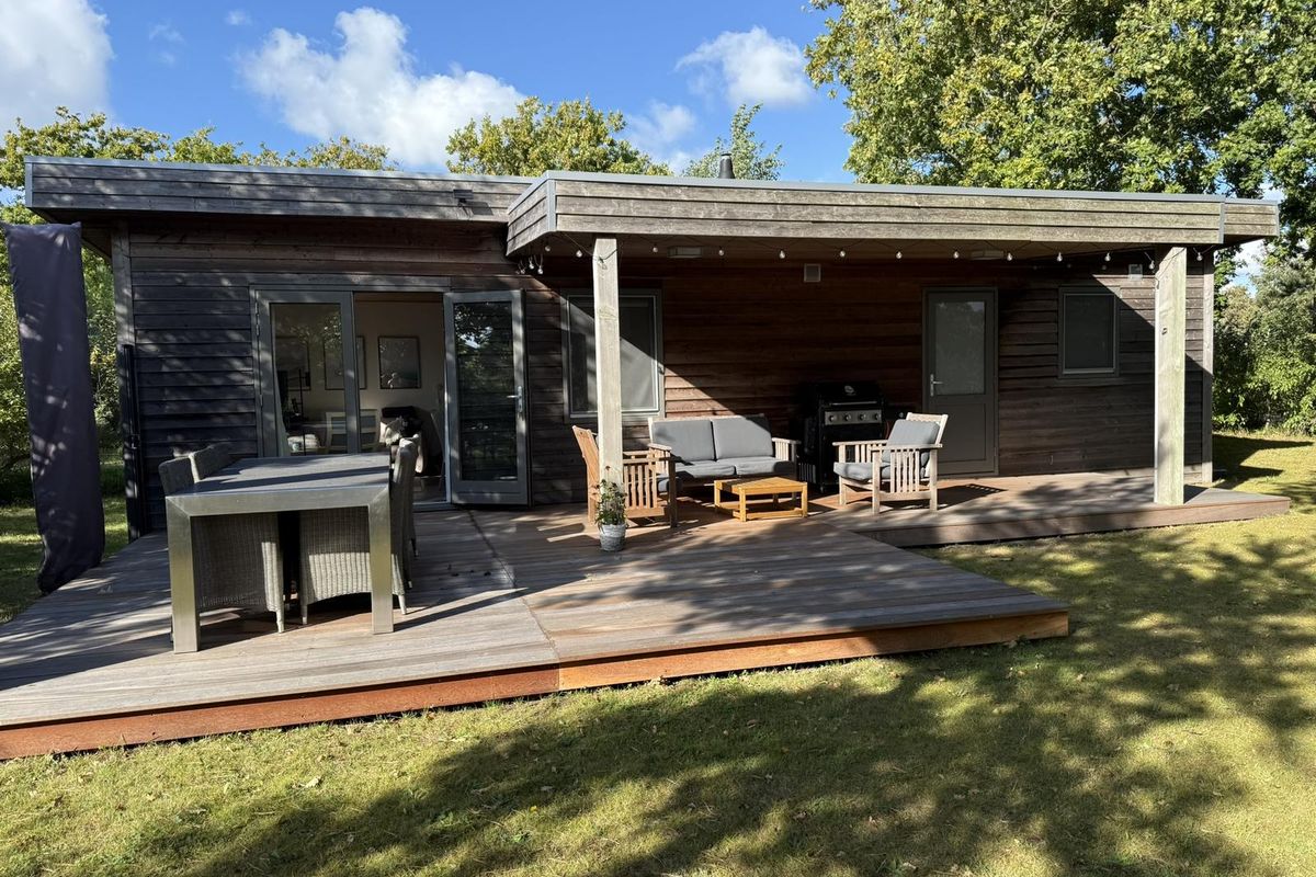 Via de dubbele openslaande deuren loopt u zo de groene tuin in, met een royaal vlonderterras en ruime luifel, de ideale plek om te ontspannen in de buitenlucht. Het terras in maart 2025 geheel vernieuwd en uitgevoerd in Bankirai. De grote vrijstaande berging en parkeergelegenheid dichtbij maken het geheel compleet. Op het vakantiepark kunt u ontspannen bij de prachtige zwemvijver en gebruikmaken van alle faciliteiten die De Klepperstee te bieden heeft. Het park is het hele jaar door geopend en goed onderhouden.