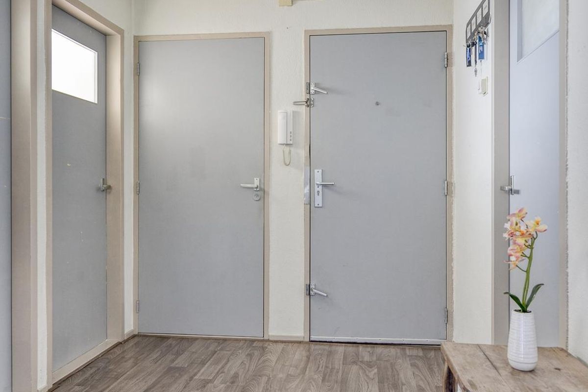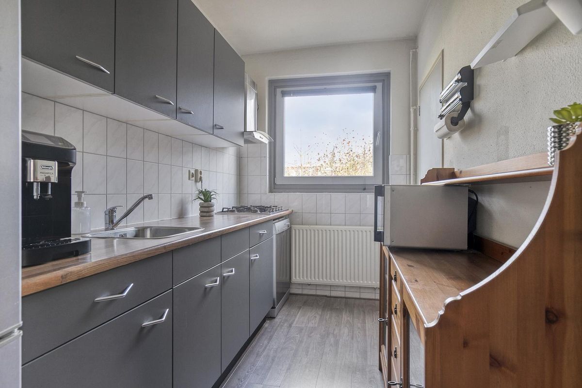 Tweede verdieping: entree/hal, met toegang tot vrijwel alle vertrekken. De zongerichte woonkamer heeft een extra raam in de zijgevel. Vanuit de woonkamer loop je het balkon op, waar je heerlijk van de zon kunt genieten. Dit balkon ligt op het zuiden. Het appartement beschikt over drie slaapkamers. De grootste slaapkamer is vanuit de hal toegankelijk en heeft een eigen balkon op het noorden. De dichte keuken is ingericht met een eenvoudige keukenopstelling en losse apparatuur. Via de keuken, of vanuit de grootste slaapkamer, bereik je de badkamer, die is voorzien van een inloopdouche, een wastafel en de aansluiting voor wasapparatuur. Tot slot is er nog een separate toiletruimte en een kast met de cv-ketel, die praktisch in de hal zijn gesitueerd.