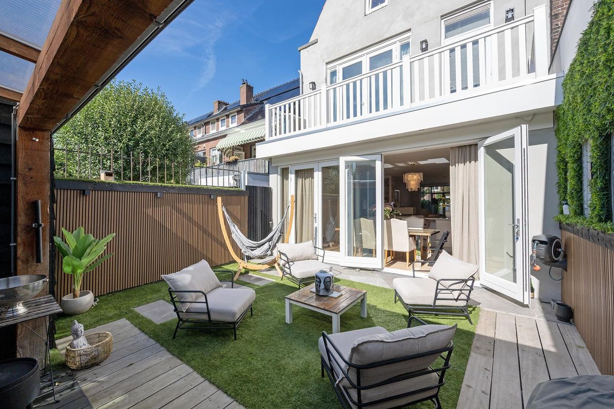 Luxe en sfeervol gerenoveerd jaren '30 herenhuis van ca. 211 m2 met 7 kamers, luxe keuken(2024) met kook-/spoeleiland en gezellige koffiecorner, twee badkamers, zonnige tuin op het zuiden, riant balkon, Airco, 20 zonnepanelen en gelegen op EIGEN GROND!