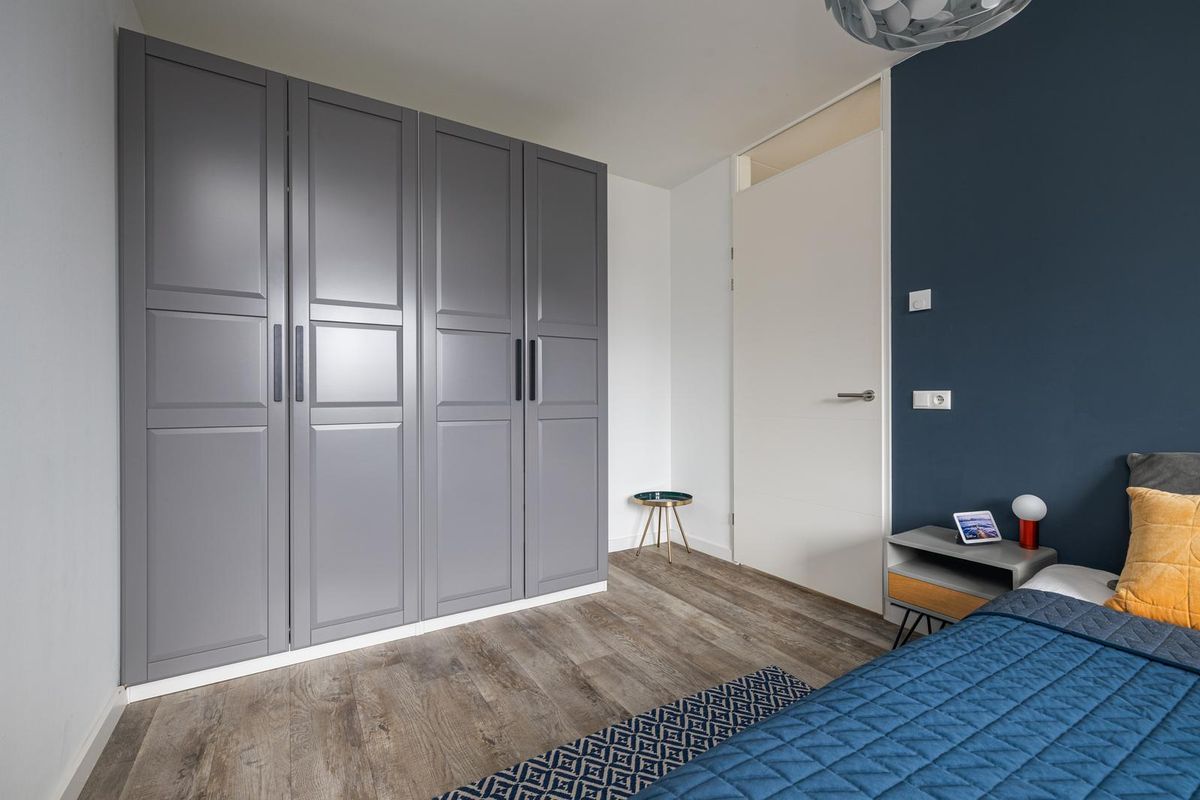Via de overloop toegang tot drie slaapkamers en de badkamer. De eerste slaapkamer van ca. 6m2 aan de achterzijde is uitstekend geschikt als kinderkamer of werkruimte. De tweede slaapkamer van ca. 15m2 biedt een mooi uitzicht over de tuin, terwijl de derde slaapkamer van ca. 12m2 aan de voorzijde is gelegen. Alle kamers zijn strak en praktisch ingericht, wat een verzorgde indruk geeft.