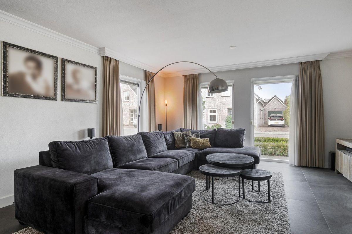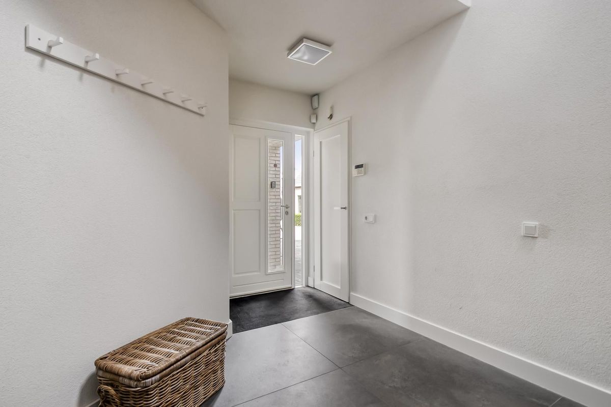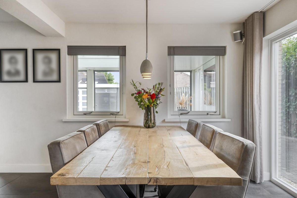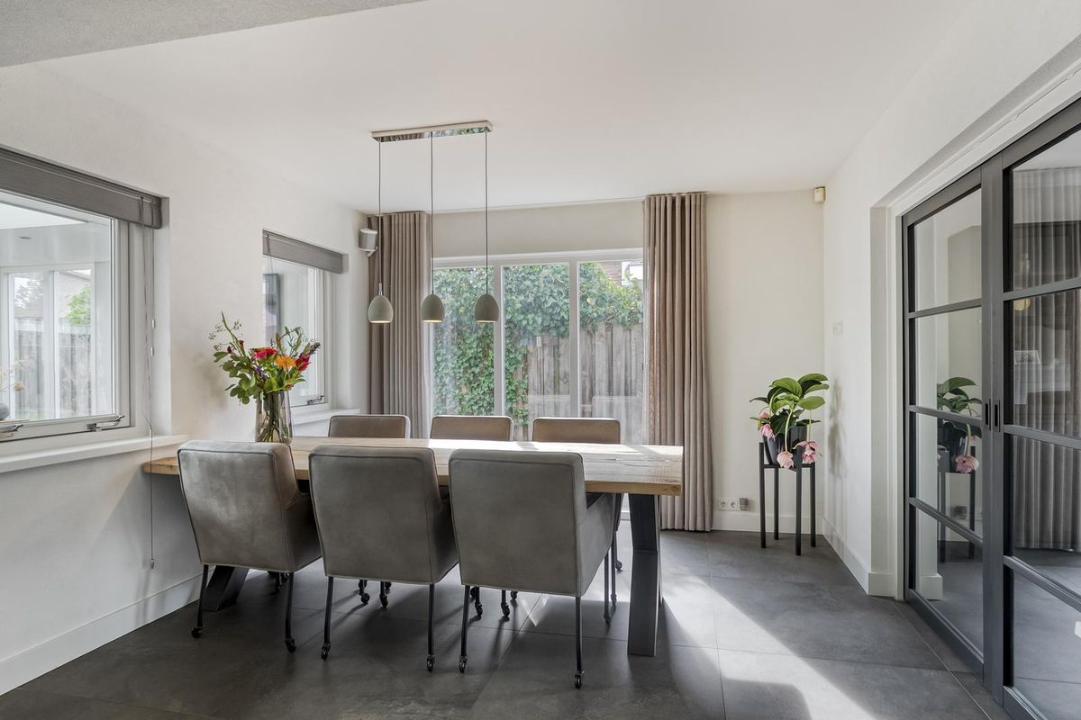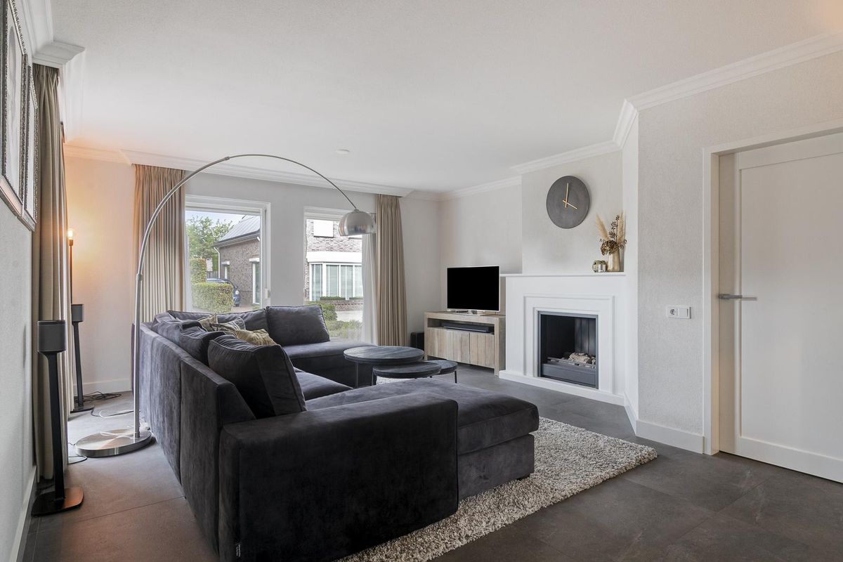 Bij binnenkomst valt direct de ruime hal op, met meterkast en trapopgang naar de eerste verdieping. De royale woonkamer heeft een prachtige lichtinval en een sfeervolle gashaard als middelpunt. Via ensuite deuren bereik je de luxe leefkeuken, die is uitgevoerd met hoogwaardige inbouwapparatuur, waaronder een Quooker, een 5-pits inductiekookplaat, twee combi-ovens, een vaatwasser en een koelkast. Aansluitend bevindt zich de praktische bijkeuken met toiletruimte, witgoedaansluitingen en een handige inbouwkast. Op de begane grond vind je daarnaast een extra kamer die ideaal kan dienen als kantoor, praktijkruimte of slaapkamer. De luxe serre vormt een ware eyecatcher: door de glazen pui, de lichtstraat en de hoogwaardige afwerking is dit de perfecte plek om in elk seizoen van de tuin te genieten.