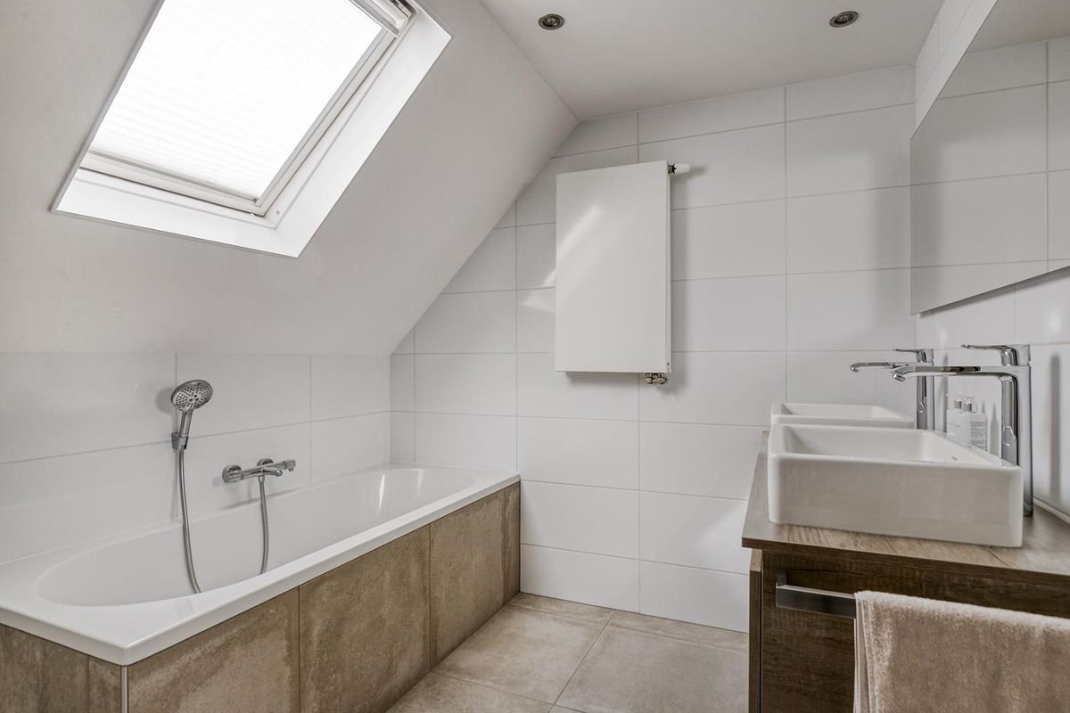 - Badkamer met ligbad, inloopdouche en dubbel wastafelmeubel
