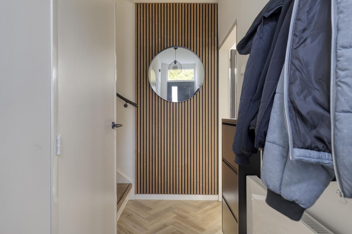 Bij aankomst valt direct de nette voortuin op, die de woning een verzorgde en uitnodigende uitstraling geeft. Nadat je gemakkelijk in de straat hebt geparkeerd, kom je binnen in een moderne hal met toegang tot het toilet, de woonkamer en de trap naar de eerste verdieping. Een fijne binnenkomer die direct de toon zet voor de rest van de woning: fris, strak en instapklaar.