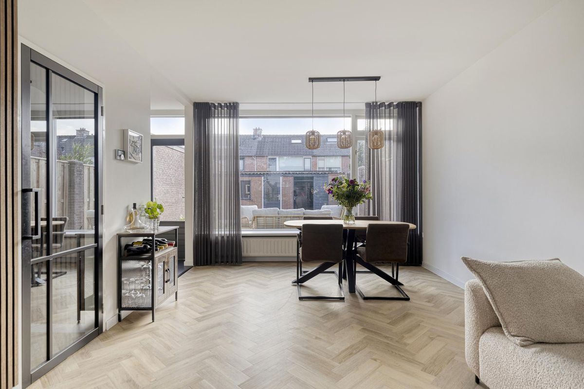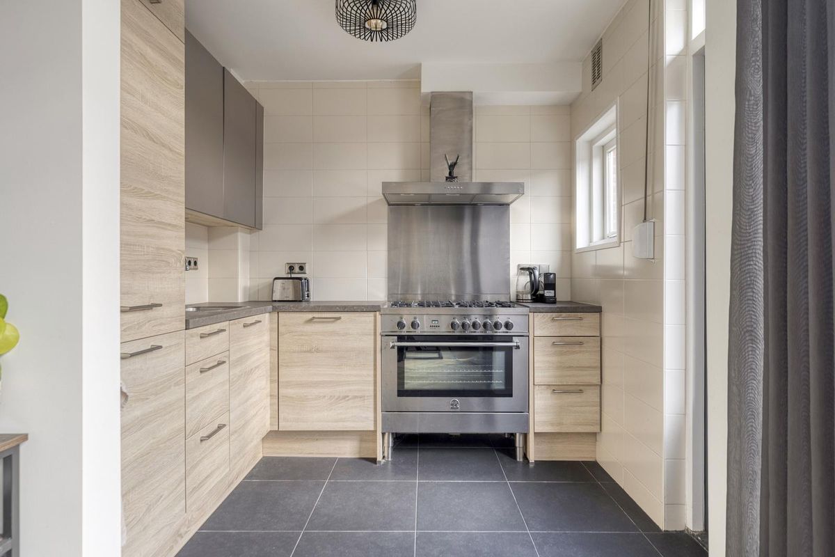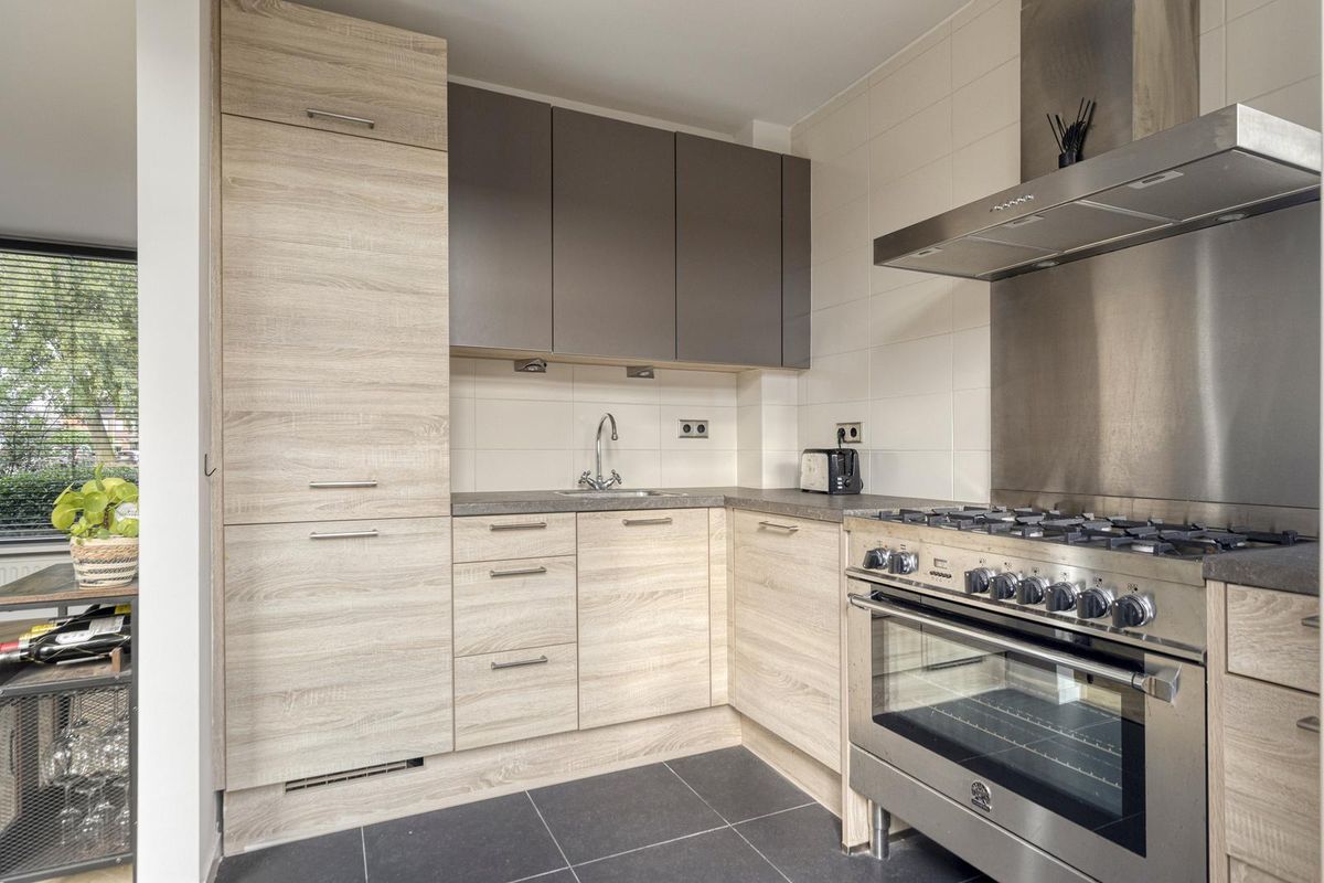 De woonkamer is een heerlijke leefruimte met een prachtige pvc-vloer en grote raampartijen aan zowel de voor- als achterzijde. Hierdoor geniet je van veel natuurlijk licht, wat zorgt voor een warme en open sfeer. Er is voldoende ruimte voor een royale zithoek waar je na een lange dag kunt ontspannen, én een ruime eethoek om gezellig te tafelen met vrienden of familie. De open keuken sluit naadloos aan op de woonkamer en is modern afgewerkt met strakke kastjes en hoogwaardige apparatuur. Denk aan een inbouw koelkast, vriezer, oven en kookplaat, alles wat je nodig hebt om de lekkerste gerechten te bereiden. De combinatie van stijl en functionaliteit maakt dit de ideale plek voor kookliefhebbers én gezinnen die houden van samenzijn.