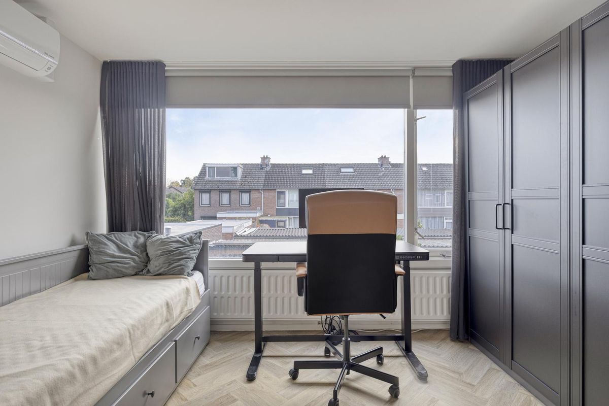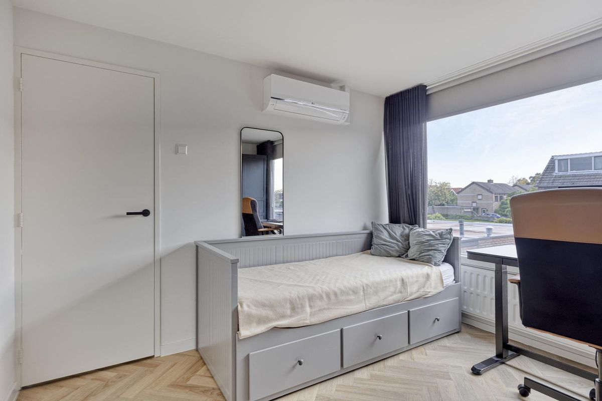 Op de eerste verdieping vind je twee ruime en comfortabele slaapkamers, beide voorzien van airconditioning. De kamers zijn strak afgewerkt en beschikken over dezelfde moderne pvc-vloer als beneden, wat zorgt voor een stijlvolle en rustige uitstraling. De badkamer is modern ingericht met een inloopdouche, toilet en wastafelmeubel met spiegel. De tweede verdieping is een prettige verrassing: dankzij het dakraam valt er volop daglicht binnen, wat deze ruimte uitermate geschikt maakt als derde slaapkamer, werk- of hobbyruimte. Ook hier is de afwerking netjes, en op de overloop heb je nog extra ruimte voor koffers, seizoensspullen of huishoudelijke benodigdheden.