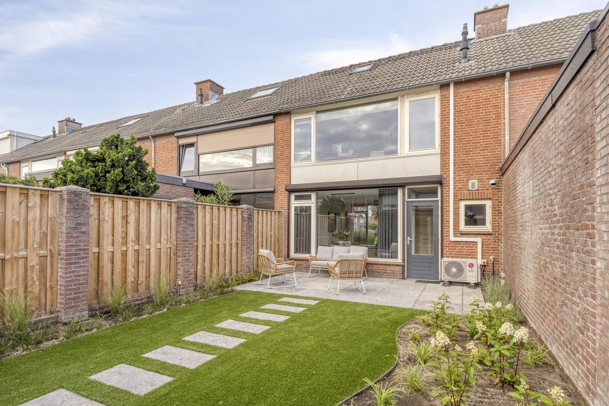 De achtertuin is verzorgd en onderhoudsvriendelijk aangelegd. Er is voldoende plek voor een gezellige loungeset of eettafel om lange zomeravonden door te brengen met vrienden of familie. Achter in de tuin bevindt zich een berging met overkapping, ideaal voor fietsen of tuingereedschap, én een achterom voor extra gemak.