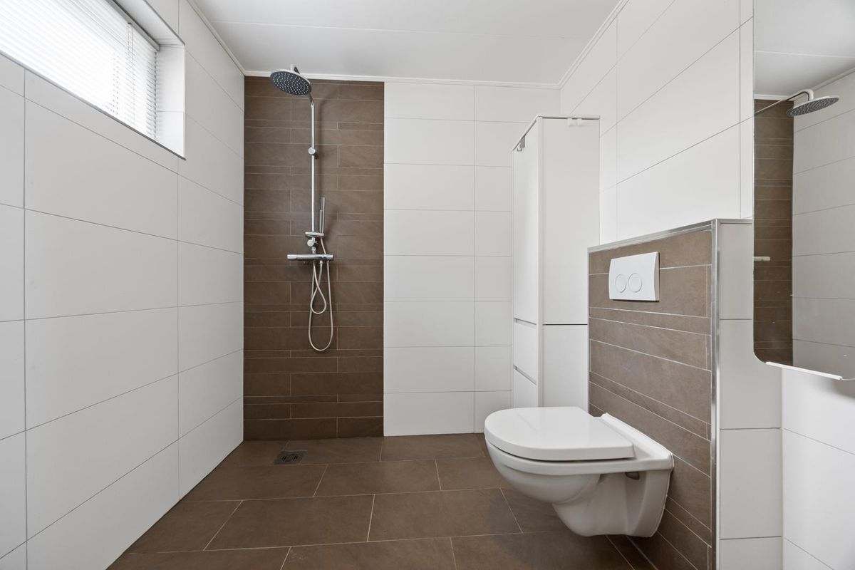 Op de eerste verdieping leidt de overloop naar drie ruime slaapkamers. De master bedroom aan de achterzijde beschikt over een eigen walk-in closet en twee ramen beide voorzien van een hor. De badkamer is modern ingericht met een wastafelmeubel, spiegelkast met verlichting, wandcloset, handdoekradiator, velux dakraam met verduistering en een inloopdouche met hand- en regendouche. De badkamer is uitgevoerd in rustige tinten uitgevoerd wat zorgt voor een serene sfeer. De twee slaapkamers aan de voorzijde zijn identiek van formaat, worden voorzien van licht middels grote raampartij (waarvan 1 kamer voorzien van hor) en kijken mooi weg over het plantsoen aan de voorzijde.