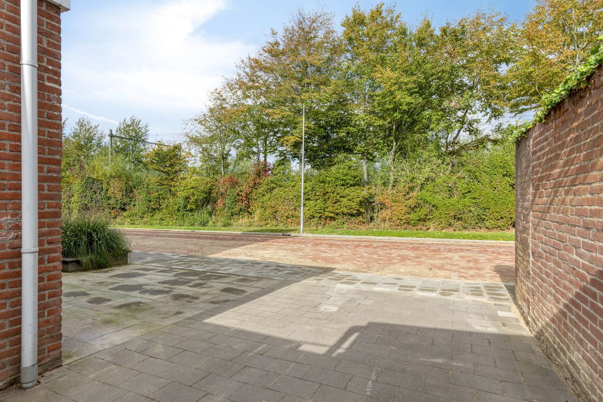 Aangrenzend vind je de praktische bijkeuken met toegang tot de tuin. Deze bijkeuken is voorzien van aansluitingen voor huishoudelijke apparatuur en is ideaal als extra bergruimte.