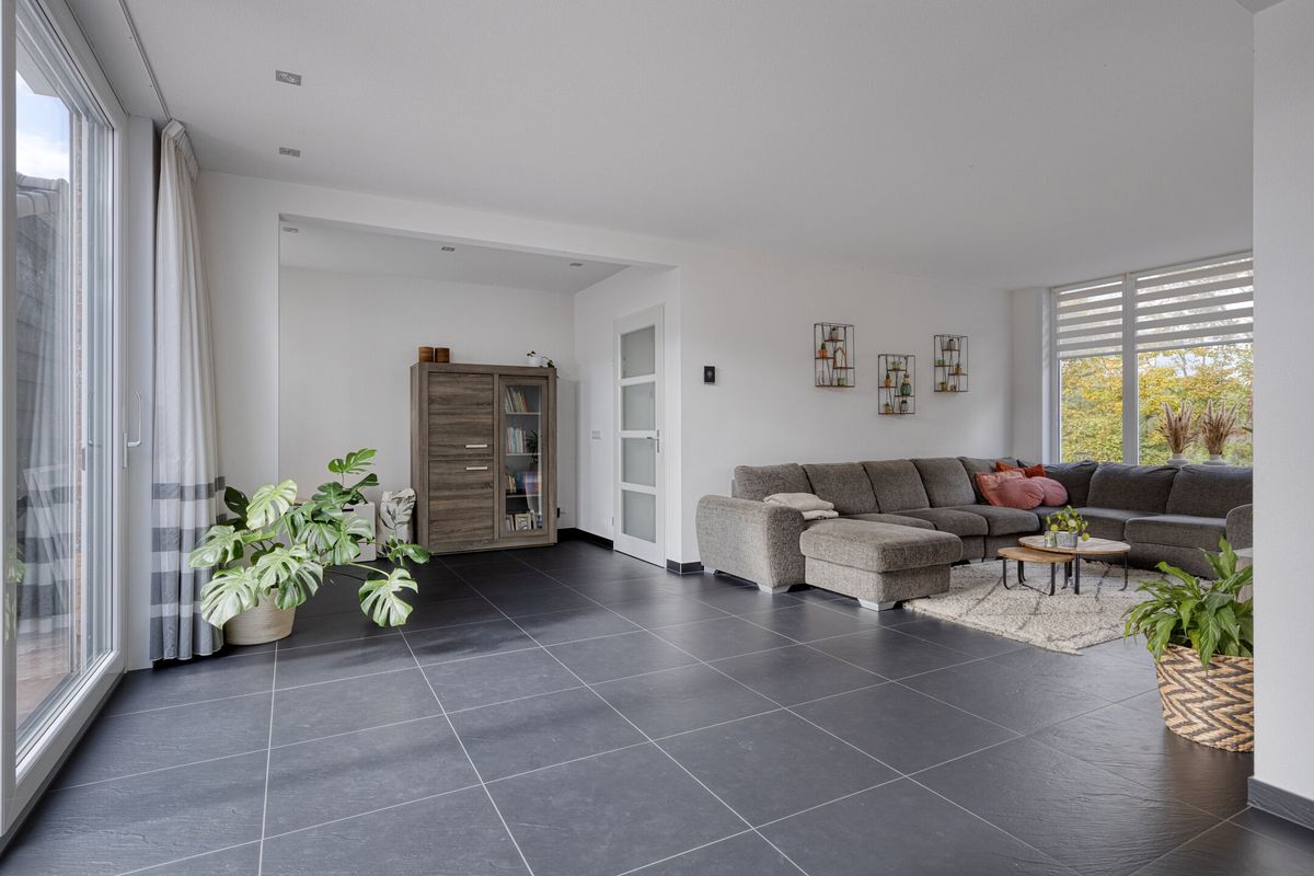 Bij binnenkomst in de woonruimte valt direct de royale woonkamer op: een heerlijke leefruimte van maar liefst ca. 33 m2 met veel lichtinval en een grote schuifpui naar de zonnige tuin.