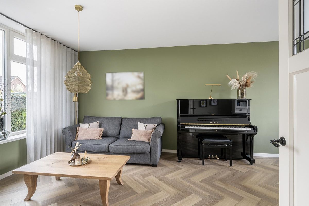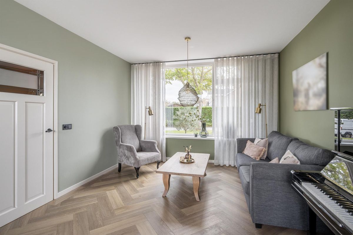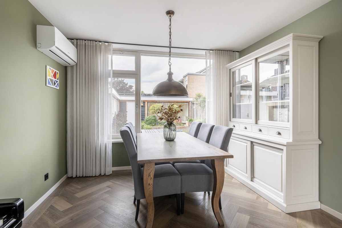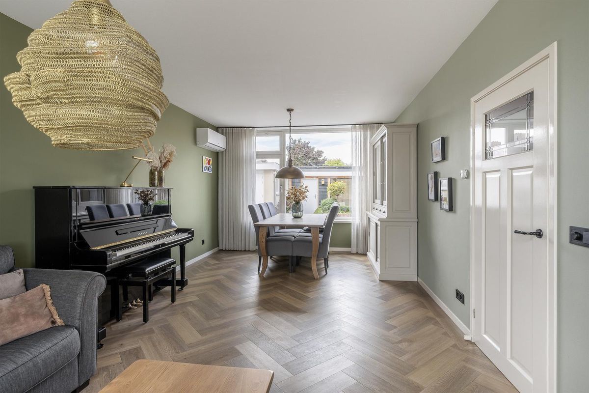 Fijne 'doorzon' woonkamer met airco voor verwarming en koeling en elektrische rolluiken aan voor- en achterzijde.