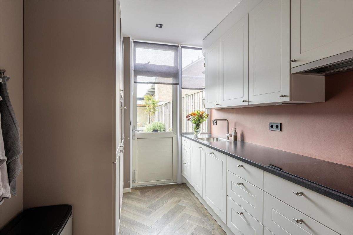 Multifunctionele ruimte met eigen meterkast (7 groepen, krachtgroep en 2 aardlekschakelaars), omvormer van de 14 zonnepanelen, witgoedaansluitingen, werkblad met spoelbak en close-in boiler en toegang tot een extra berging. Het geheel is uitgerust met ventilatie, verwarming en elektra.