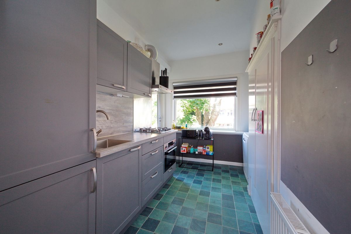 De dichte keuken bevindt zich aan de achterzijde van de woning en is uitgerust met diverse inbouwapparatuur zoals een vaatwasser, combimagnetron, 4-pits gaskookplaat, spoelbak en afzuigkap. Ook is hier de CV-ketel geplaatst. De keuken biedt veel werk- en bergruimte en vormt een fijne plek om te koken.