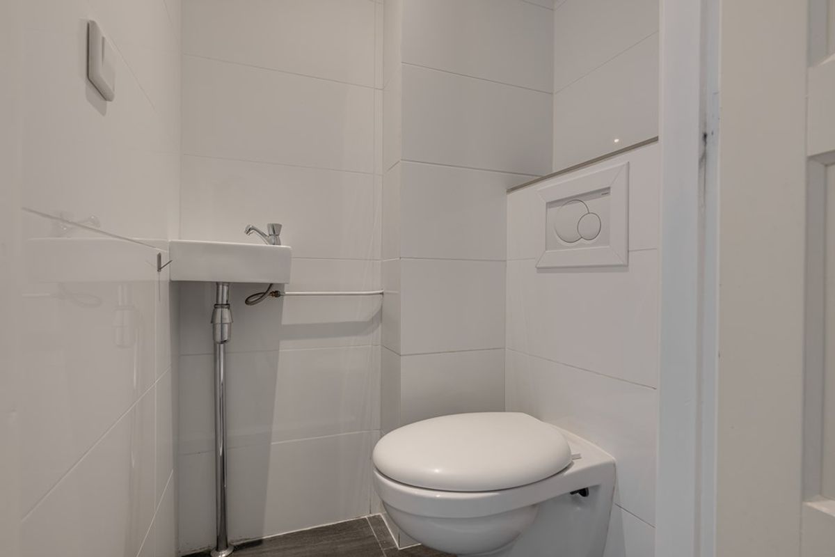 De badkamer is ruim van opzet en voorzien van een douche, wastafelmeubel en aansluiting voor de wasmachine. In de hal bevindt zich een separaat toilet met fonteintje.