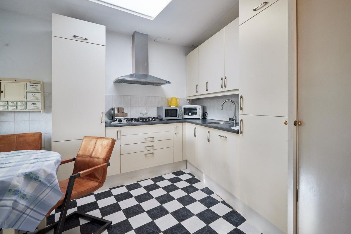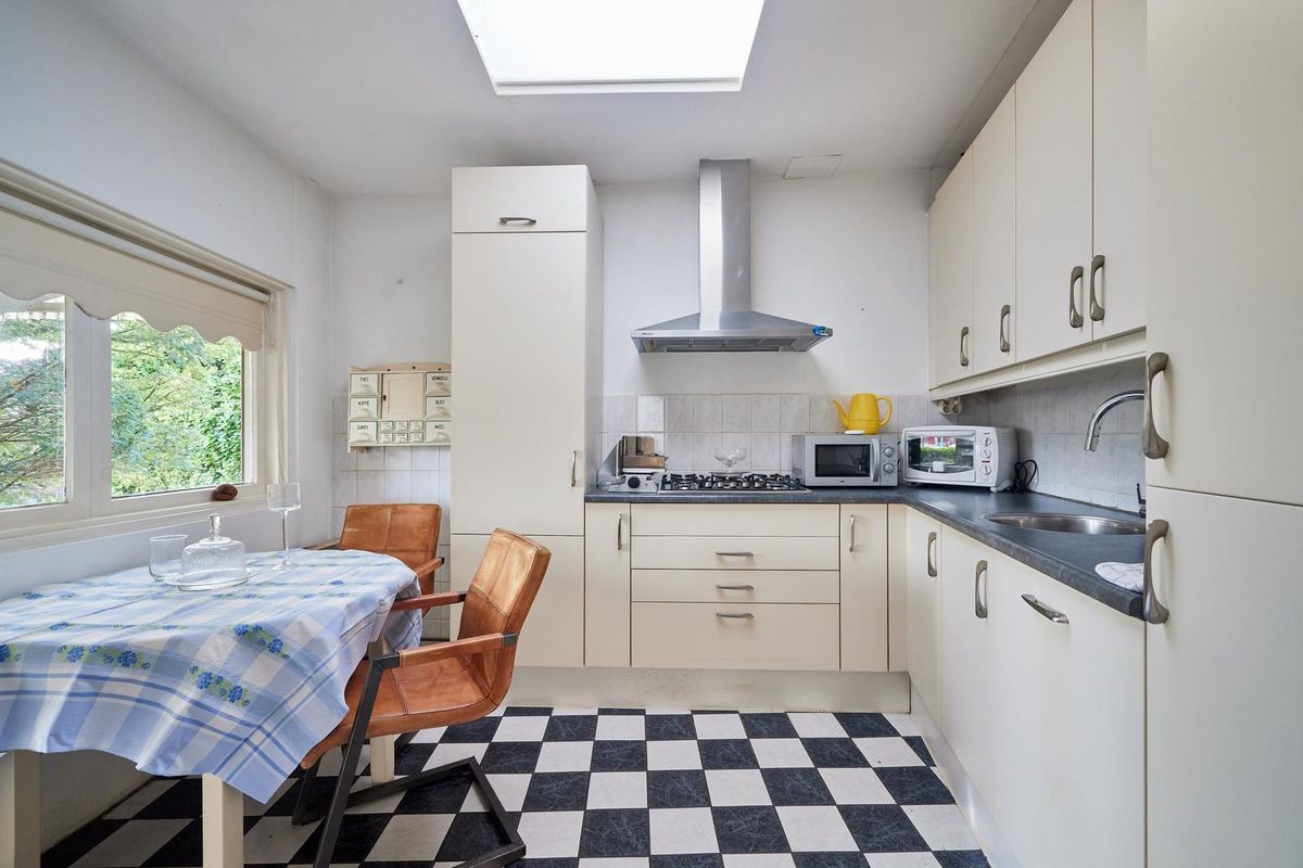 Tussen de prachtige waterstromen in het idyllische Groenekan ligt deze charmante vierkamer twee-onder-een-kapwoning van 76,9 m², gebouwd in 1922. Met drie slaapkamers, een ruime zolderverdieping en een sfeervolle woonkeuken met overkapping biedt deze woning volop mogelijkheden. Het royale perceel van circa 15 meter breed en 29 meter diep herbergt niet alleen een grote schuur met een tweede overkapping, maar ook een riante vrijstaande garage met een indrukwekkende hoogte van 3,40 meter en openslaande deuren. Dit karakteristieke jaren ’20-pand, vol authentieke details en sfeer, is volledig te renoveren en vormt daarmee de perfecte kans voor wie een droomhuis helemaal naar eigen smaak wil creëren. Gelegen in het groene en rustige Groenekan, geniet je hier van maximale privacy en rust.