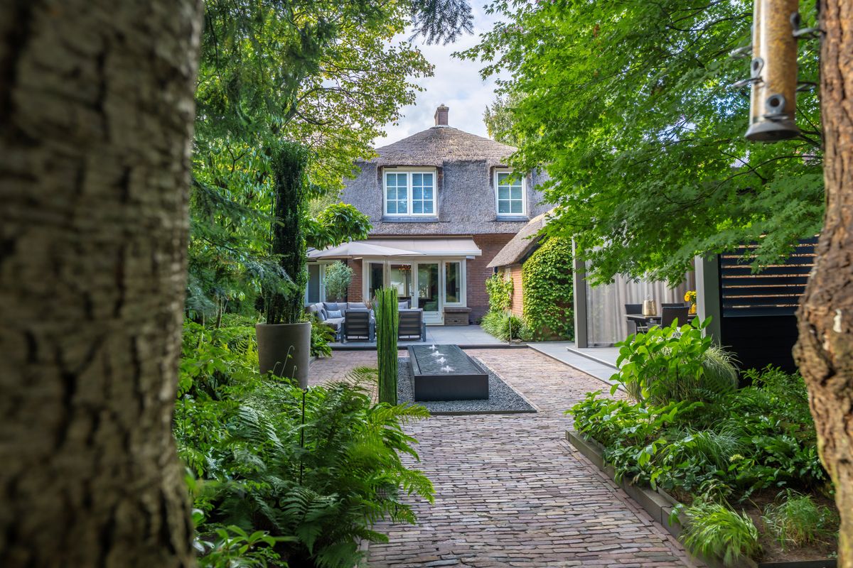 Wat deze villa zo bijzonder maakt, is de tuin. Alles ademt hier zorg en aandacht: professioneel aangelegd, met liefde onderhouden en ingericht voor optimaal genieten. Ruime terrassen, strak betegeld met stijlvolle Pien Boon-tegels van 90x90 cm, nodigen uit tot ontspannen buitenleven. Dankzij de openslaande deuren vanuit de woonkamer en de boerendeur vanuit de keuken lopen binnen en buiten naadloos in elkaar over. Op warme dagen zorgt een elektrisch zonnescherm boven het terras direct achter het huis voor extra comfort. De tuin is tot in detail doordacht. Een uitgekiend lichtplan laat het groen ’s avonds sprookjesachtig tot leven komen en maakt de tuin net zo sfeervol als overdag. Het waterspel met vier fonteinen vormt een echte blikvanger en brengt een rustgevend geluid met zich mee. Het onderhoud is verrassend eenvoudig dankzij het automatische sproeisysteem met buitenkraan. Of het nu lente, zomer, herfst of winter is – deze tuin biedt altijd een plek van rust, luxe en privacy. Een buitenruimte om trots op te zijn.
