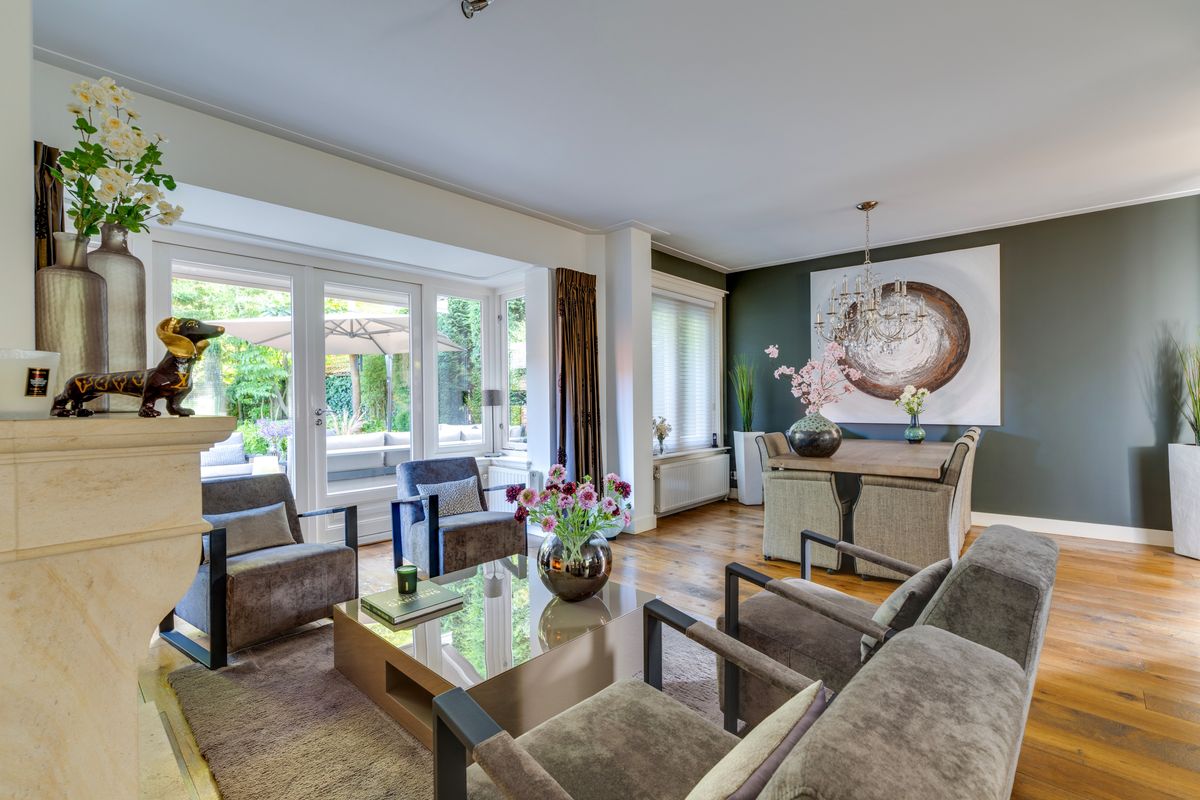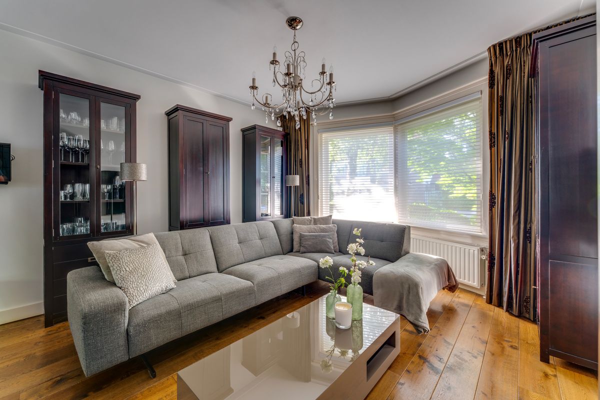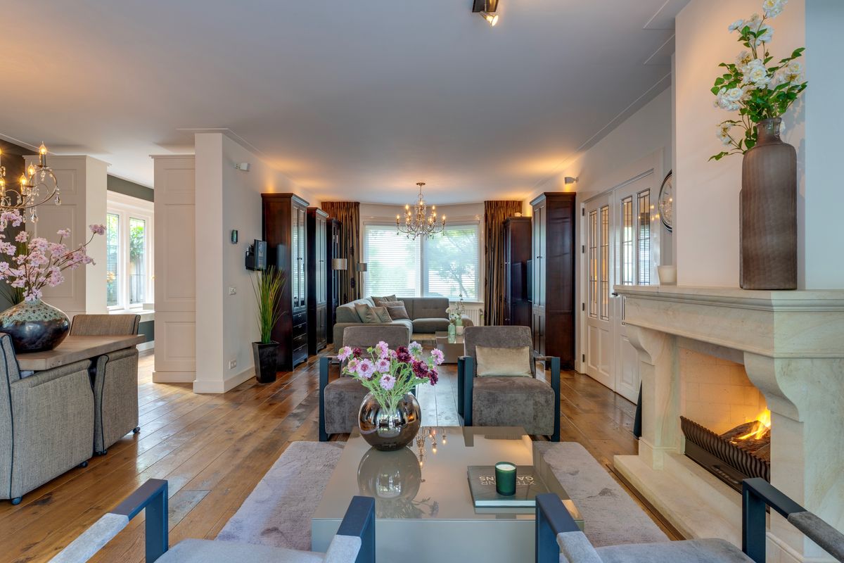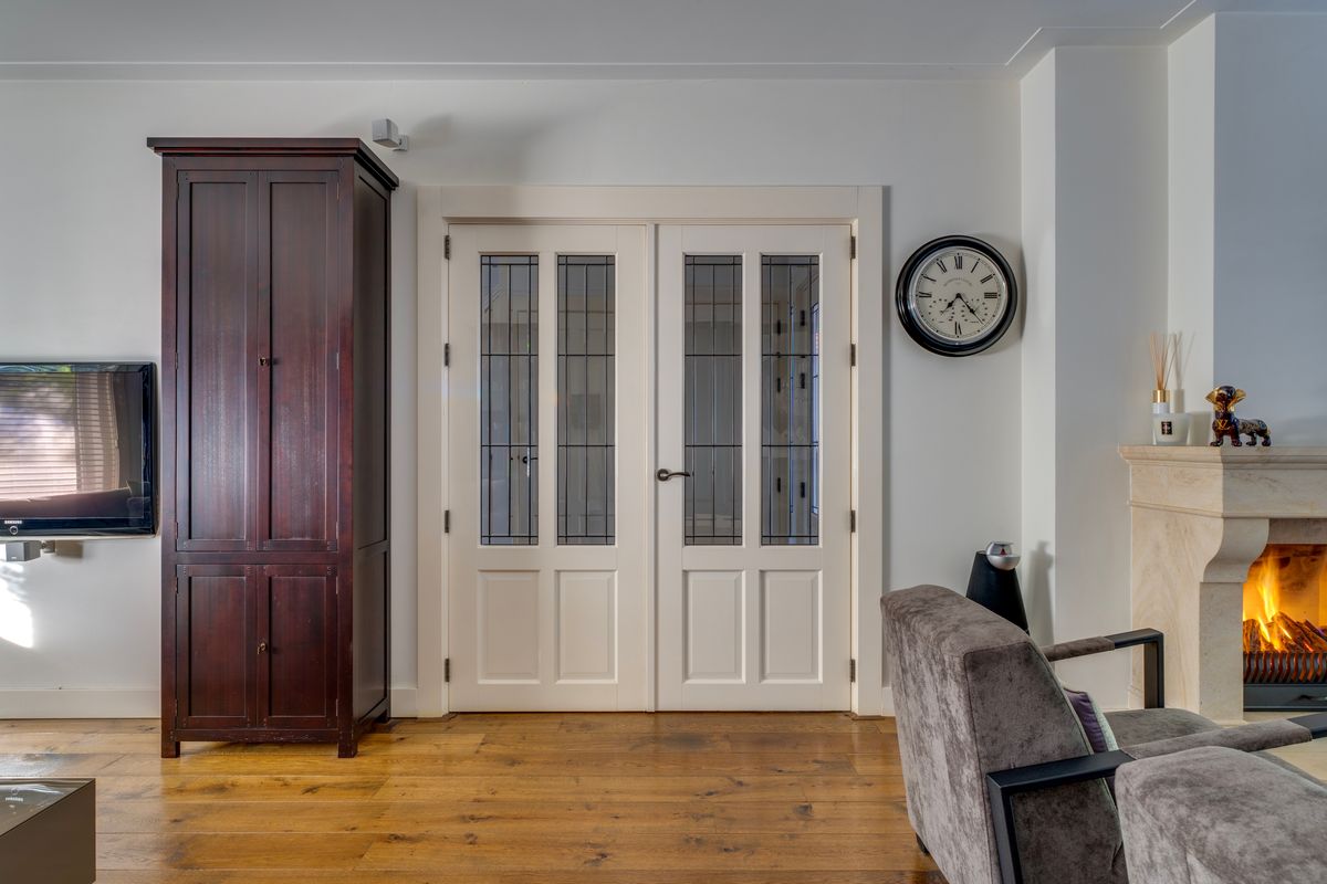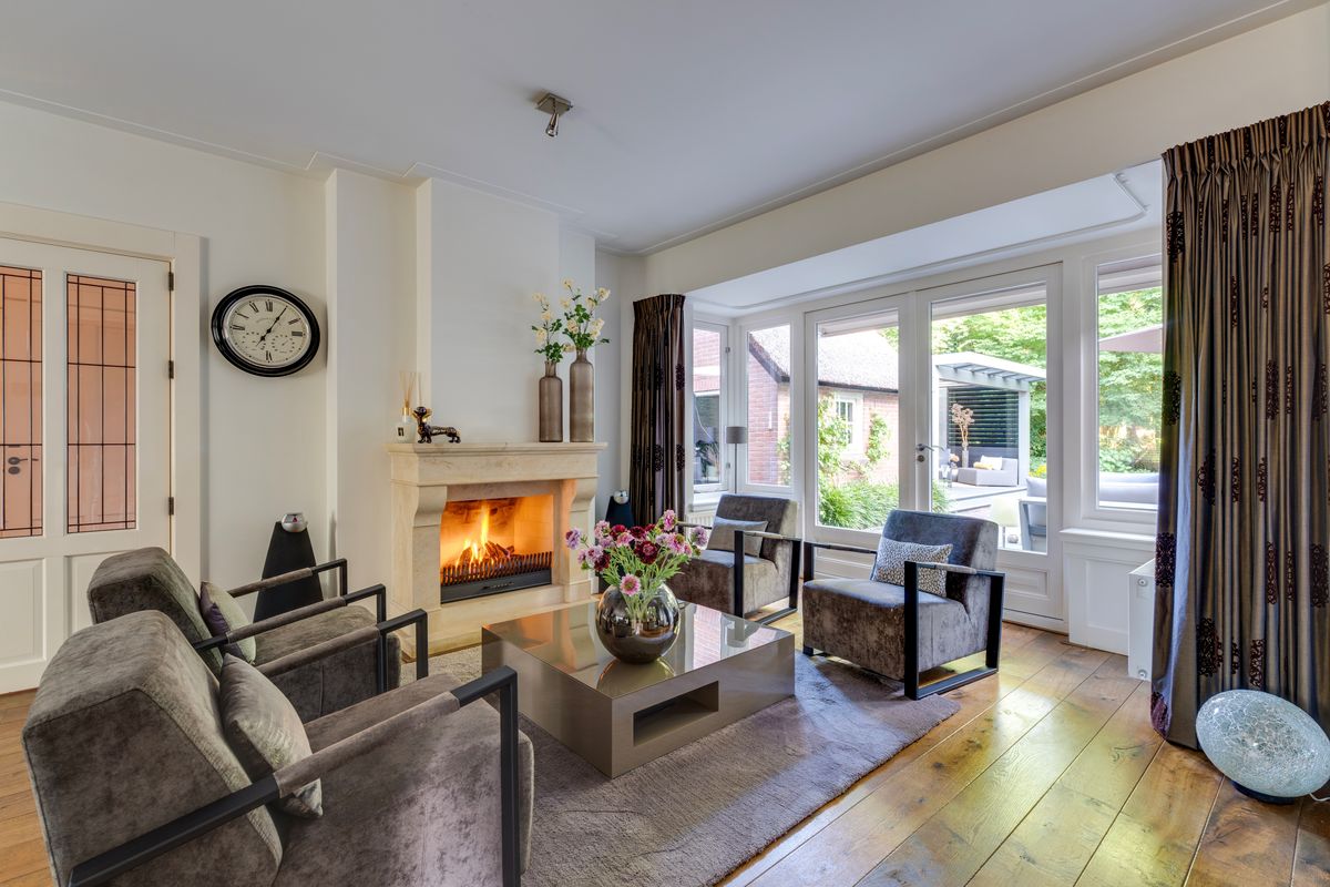 De woonkamer is een heerlijke leefruimte waar licht, rust en comfort samenkomen. De eikenhouten vloer loopt naadloos door en verbindt de zithoek, eethoek en keuken tot één geheel. In de erker aan de voorzijde staat de bank; hier kun je ontspannen, tv kijken of genieten van het uitzicht op de voortuin. Langs de zijwand zorgt een stijlvolle gashaard voor extra warmte en sfeer. Verder naar achteren is er volop ruimte voor een grote eettafel – perfect voor gezellige diners of lange avonden met vrienden. De grote ramen en openslaande deuren aan de achterzijde laten het daglicht rijkelijk binnen en zorgen voor een directe verbinding met de tuin. De keuken is in 2022 volledig vernieuwd en combineert strak design met hoogwaardige kwaliteit. Het geheel is modern, licht en tot in detail doordacht, met greeploze kasten en een stijlvol werkblad dat perfect aansluit op de rest van het interieur. Koken doe je hier op topniveau met apparatuur van het Zwitserse merk V-ZUG – een naam die staat voor innovatie en precisie, vergelijkbaar met Gaggenau en de meest exclusieve lijnen van Miele. Blikvangers zijn de multifunctionele oven en de stoomoven uit de V6000 Excellence Line serie. Daarnaast beschik je over een inductiekookplaat met geïntegreerde afzuiging van V-ZUG, een V-ZUG vaatwasser, een Quooker en een ruime koelkast met BioFresh laden van Liebherr. Via de charmante boerendeur stap je zo het terras op, en samen met het grote raam zorgt dit voor een aangename lichtinval. In de kelder vind je bovendien een aparte vriezer – ideaal voor extra voorraad.