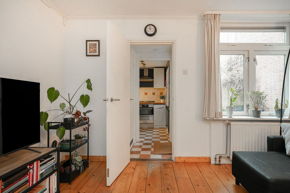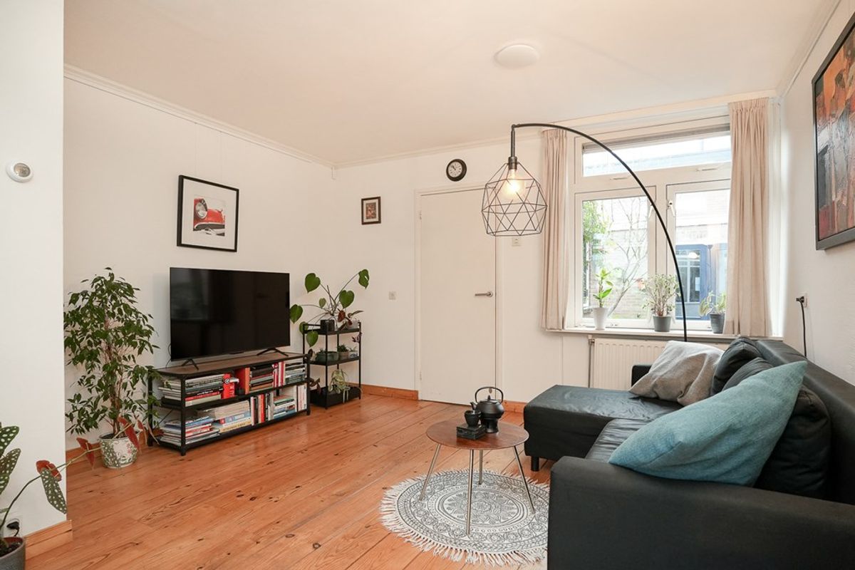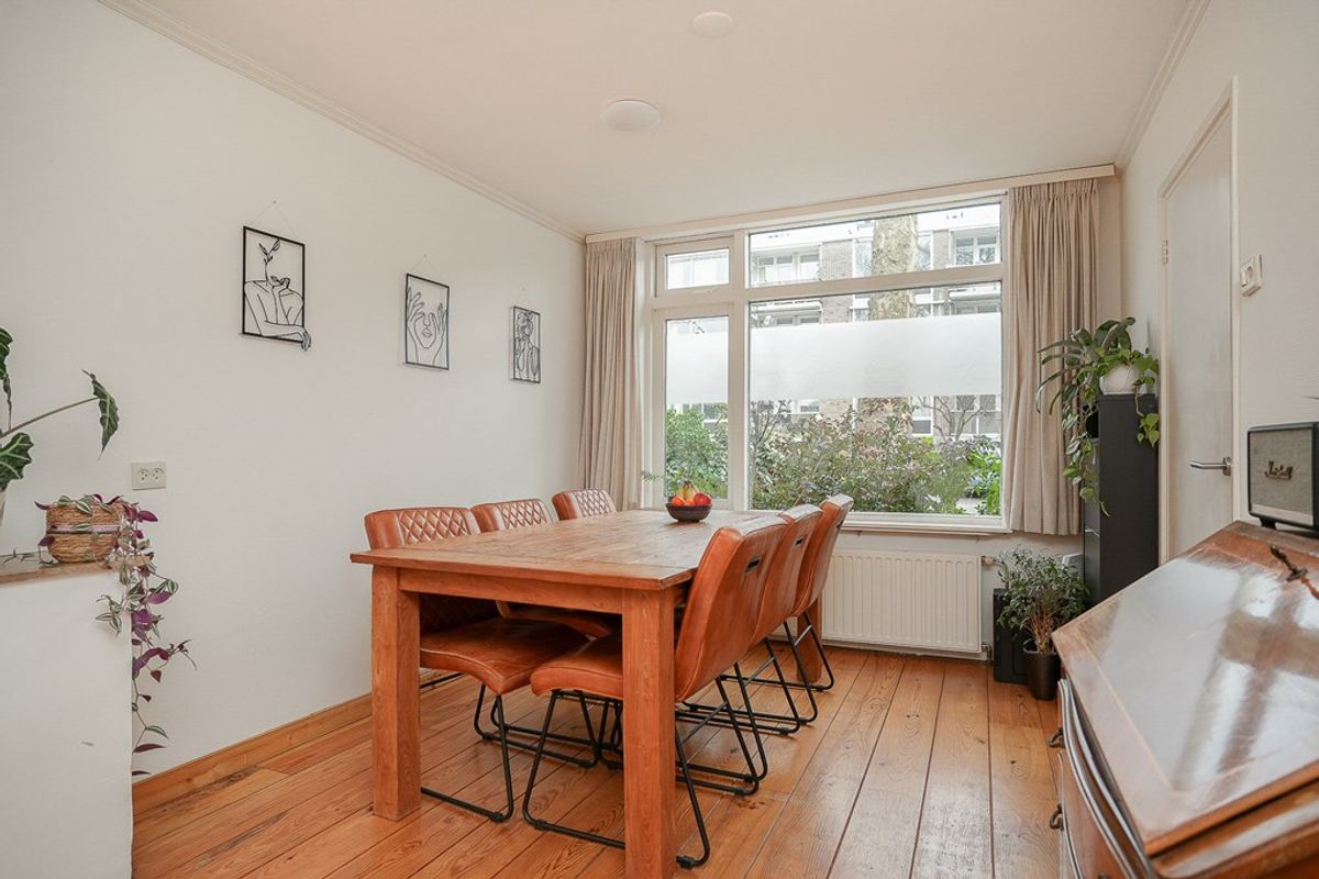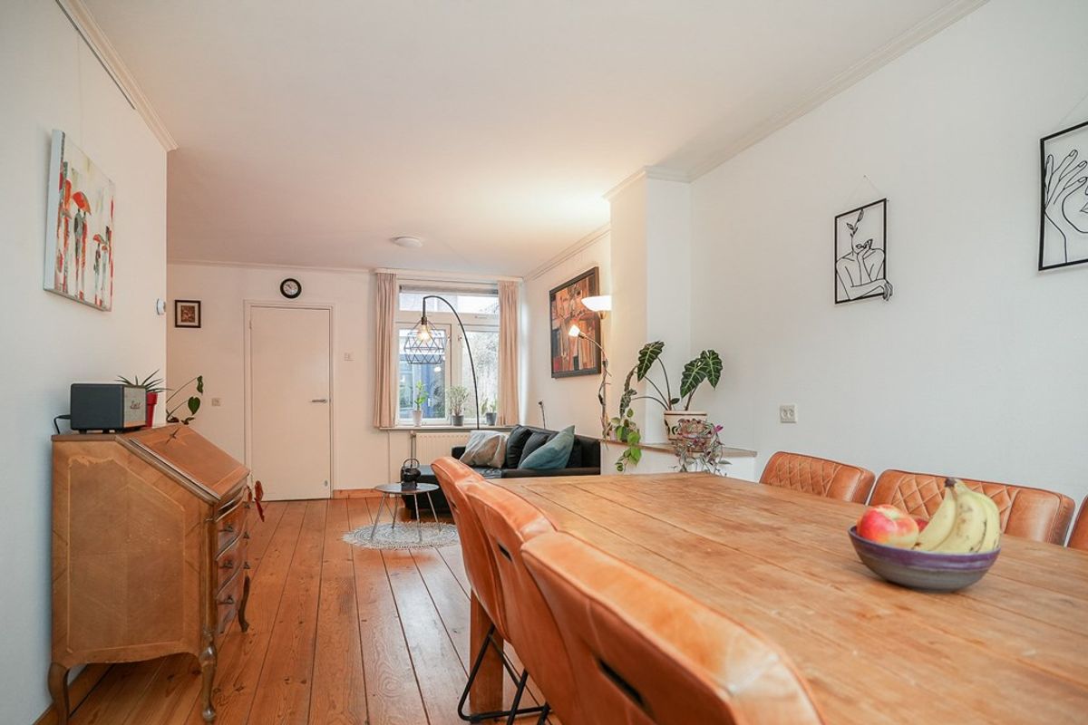 Je komt de woning binnen in de hal met trapopgang. Vanuit hier betreed je de leefruimte met aan de voorzijde de eetkamer en aan de achterzijde de woonkamer voorzien van een fraaie houten vloer. Aansluitend een tussenhal met toilet en deur naar de tuin. Daarachter bevindt zich de complete keuken met diverse inbouwapparatuur en voldoende bergruimte.