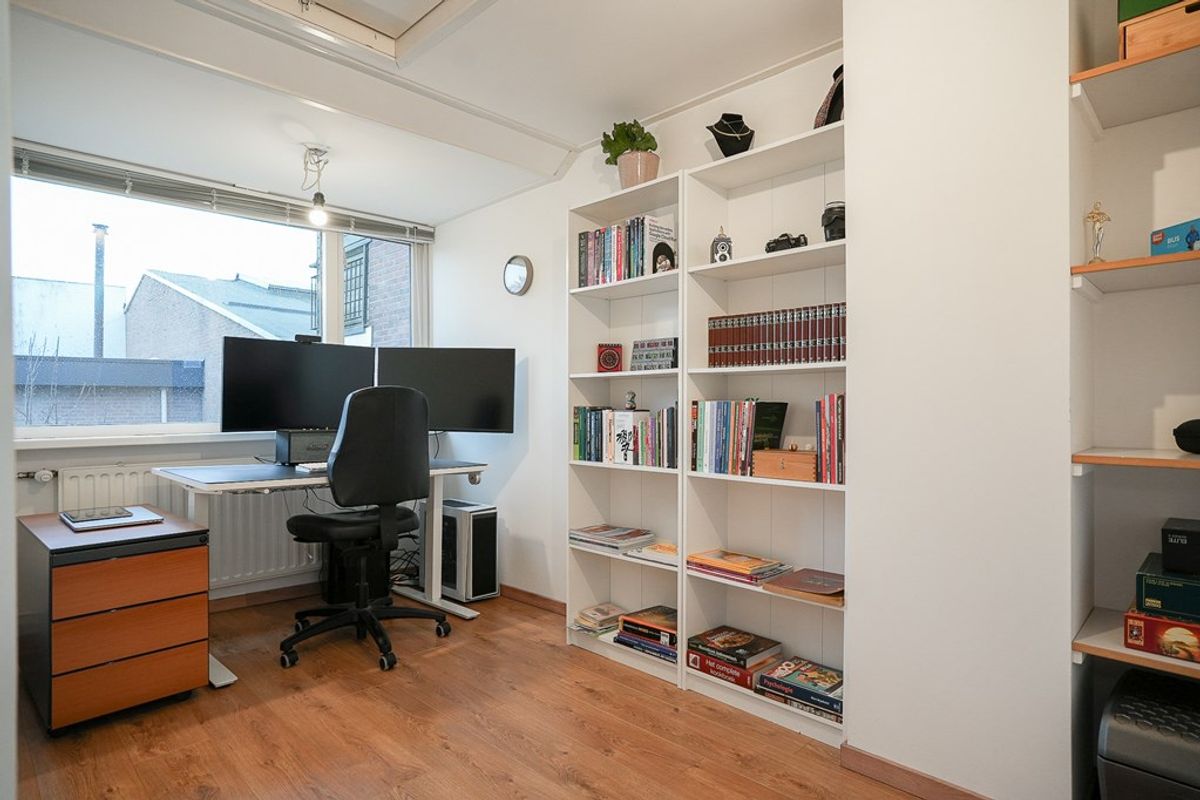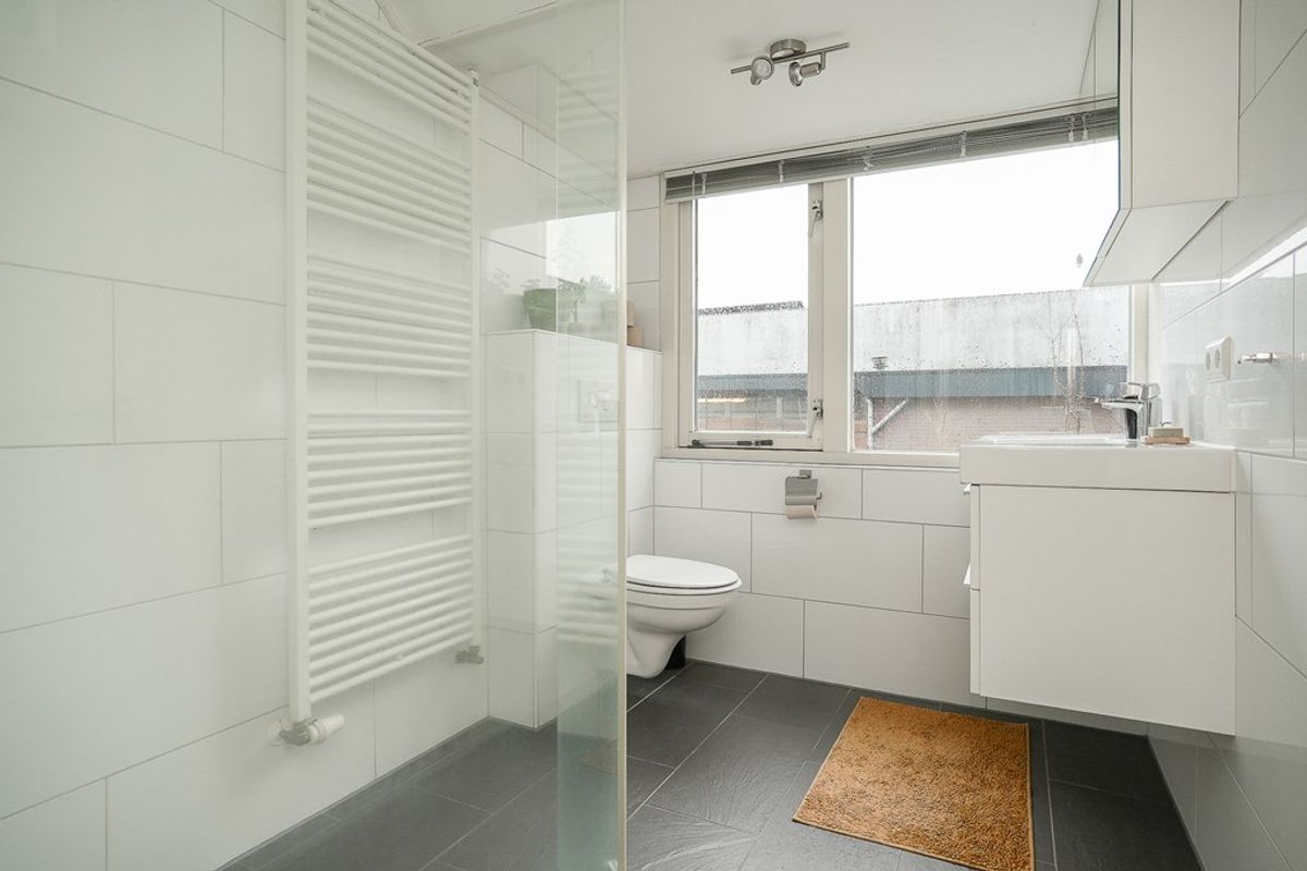 De overloop geeft toegang tot twee slaapkamers en de badkamer. De badkamer is ruim en modern uitgevoerd met een inloopdouche, wastafelmeubel en een tweede toilet. De grootste slaapkamer bevindt zich aan de voorzijde van de woning en is voorzien van een dakkapel en een handige vaste kast. De tweede slaapkamer bevindt zich aan de achterzijde en biedt via een vlizotrap toegang tot de vliering.