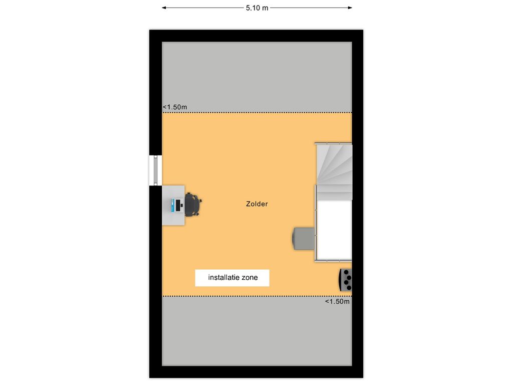 Open ruimte met installatiezone (hydrotop) en wandhangend binnendeel van de warmtepomp. Mogelijkheid om een 4e slaapkamer of hobbyruimte te realiseren.