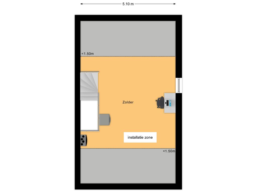 Open ruimte met installatiezone (hydrotop) en wandhangend binnendeel van de warmtepomp. Mogelijkheid om een 4e slaapkamer of hobbyruimte te realiseren.