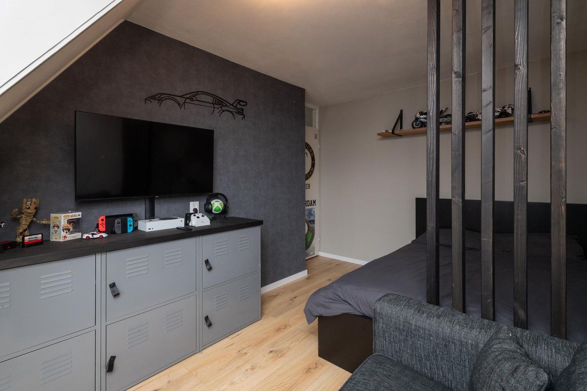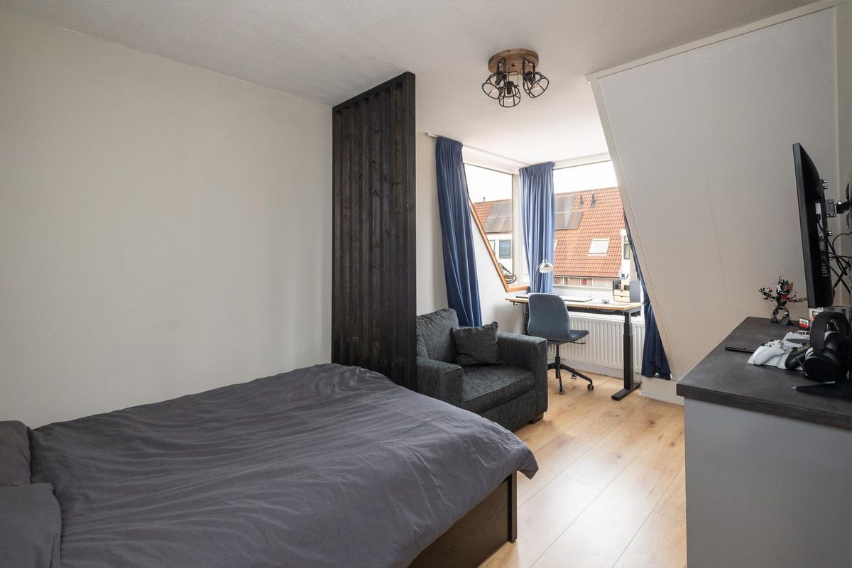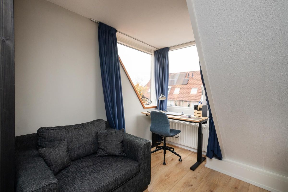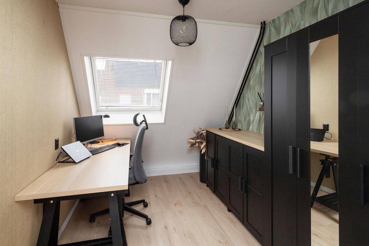 Overloop met de opstelplaats van de CV-combiketel en de wasmachineaansluiting. Toegang tot een ruime, 4e slaapkamer met een dakraam, zijraam en bergruimte achter knieschotten.